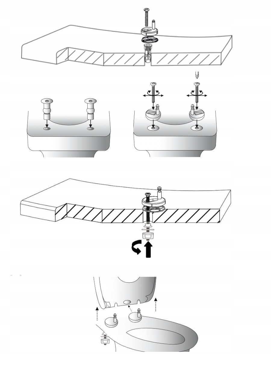 Jaki typ zastosować? W zależności od dostępności miejsca do montażu i wielkości otworów w misce. Starsze typy toalet mają duże otwory montażowe, w których lepiej przykręcić deskę od dołu.