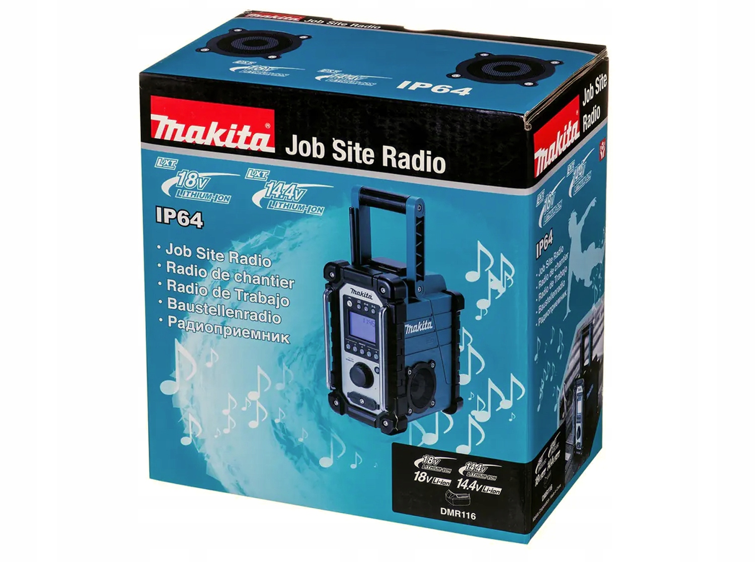 Radio budowlane makita z możliwością zasilania akumulatorowego lub z sieci. Wzmocniony zasięg odbioru dzięki wbudowanej antenie odbiorczej pozwala na korzystanie z radia nawet w niesprzyjających warunkach użytkowania. Współpracuje z akumulatorami litowo-jonowymi 14,4V oraz 18V (nie działa na bateriach Ni-Cd oraz Ni-MH) na falach FM i AM.