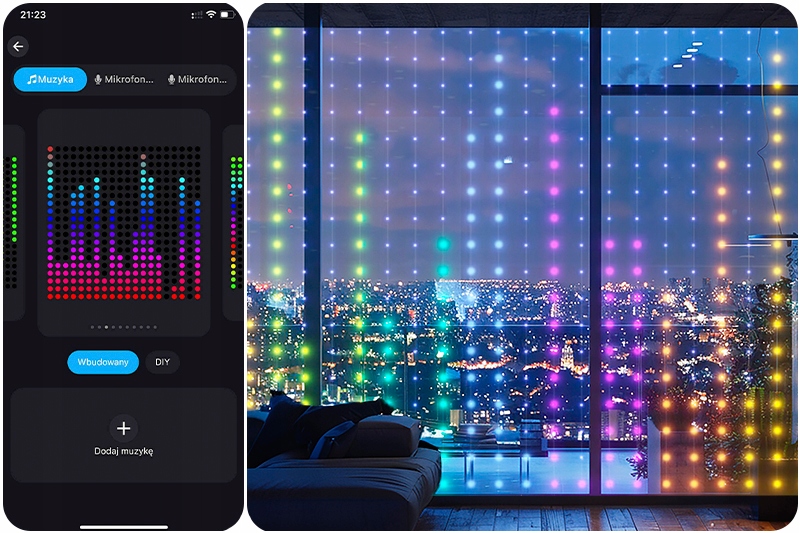 Za pomocą aplikacji możesz połączyć ze sobą do 3 sztuk Kurtyn LED i sterować nimi jak jedną!