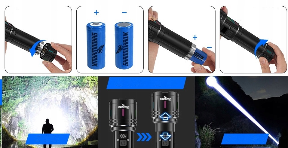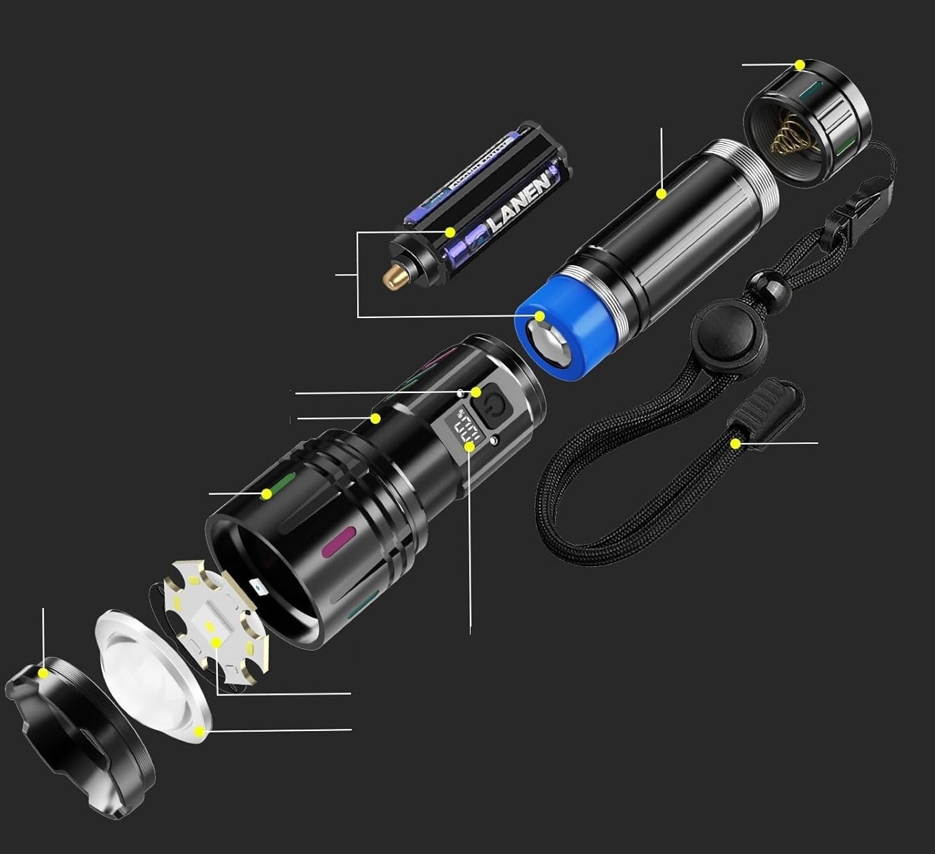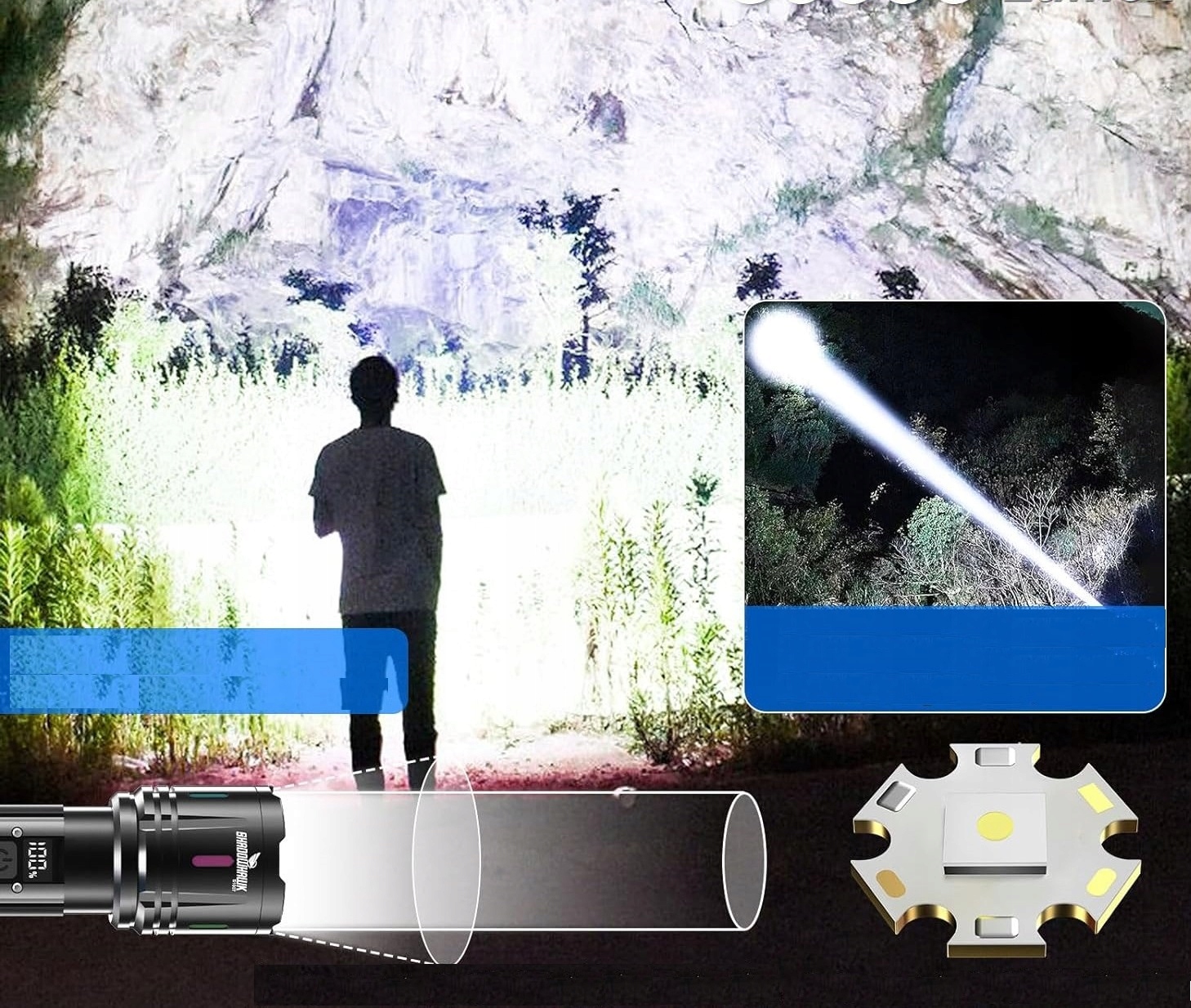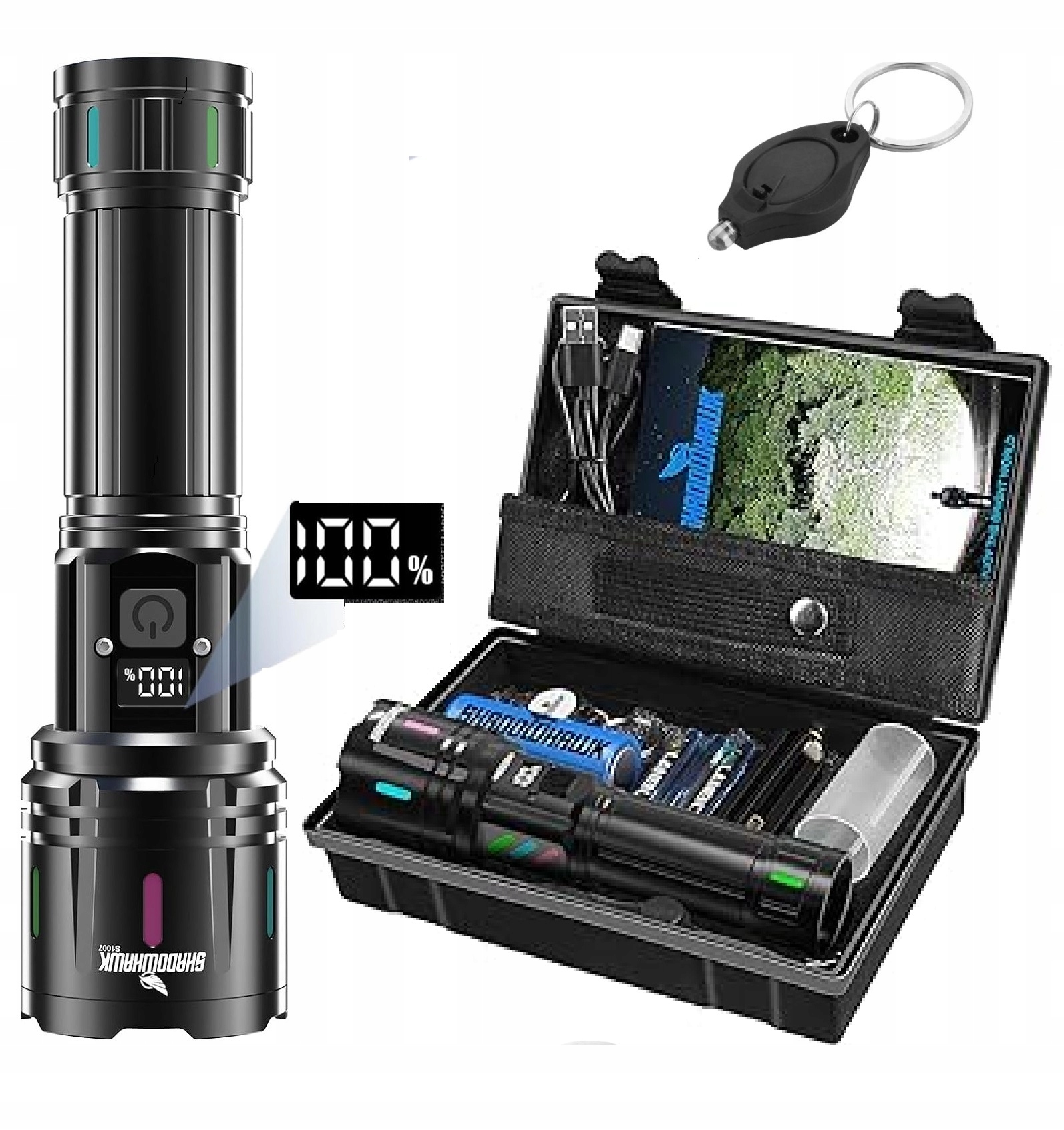 Latarka LED jest wyposażona w cyfrowy wyświetlacz LCD, który stanowi rewolucyjną innowację w historii latarek. Na pierwszy rzut oka można odczytać pozostałą moc i naładować ją w odpowiednim czasie.