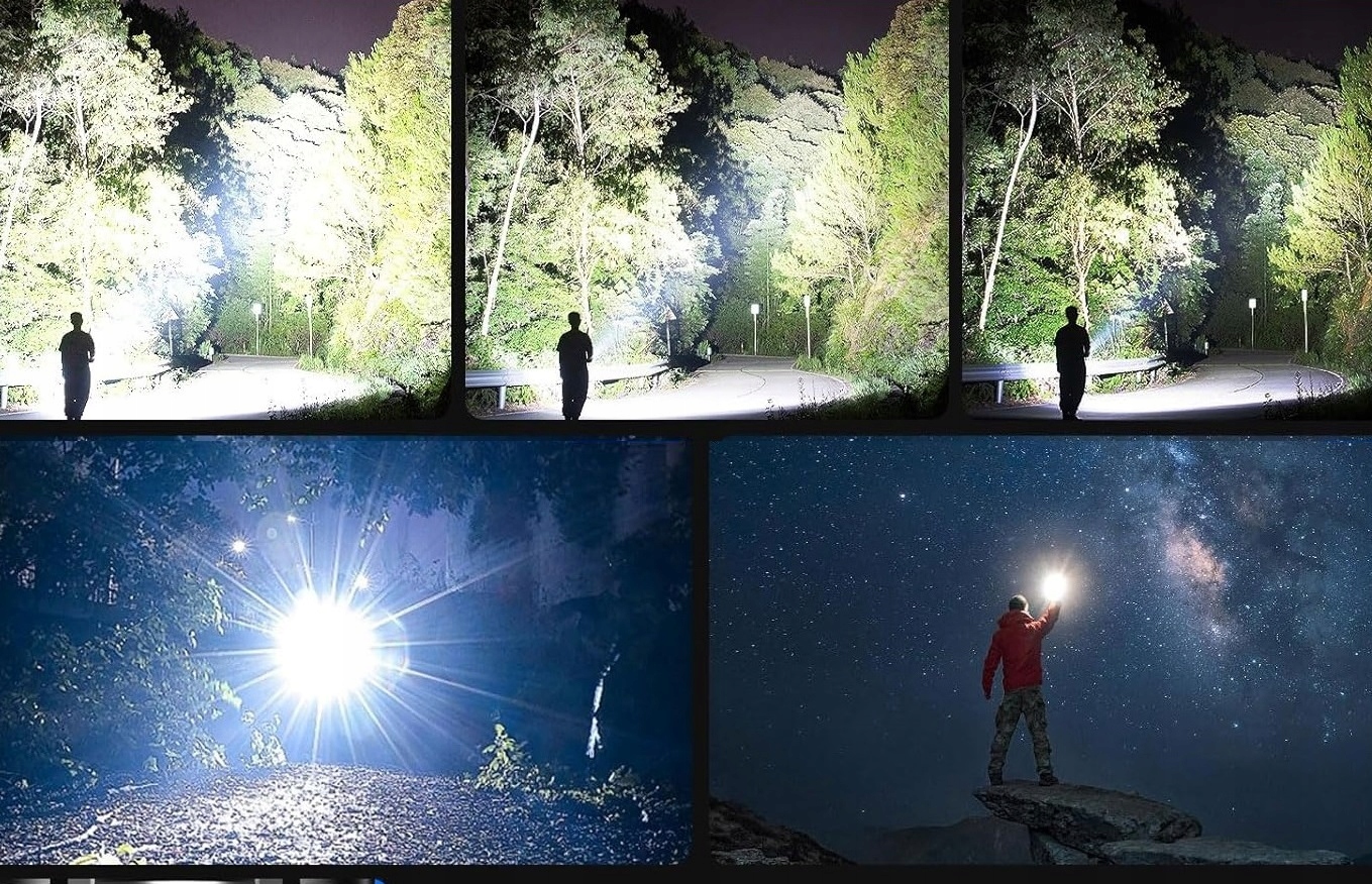 Regulacja ostrości: 5 trybów jasności (wysoki, średni, niski, stroboskopowy, SOS) latarki LED ładowanej przez USB zmienia się stopniowo zamiast natychmiast, dzięki czemu można uniknąć nagłego podrażnienia oczu i chronić oczy.