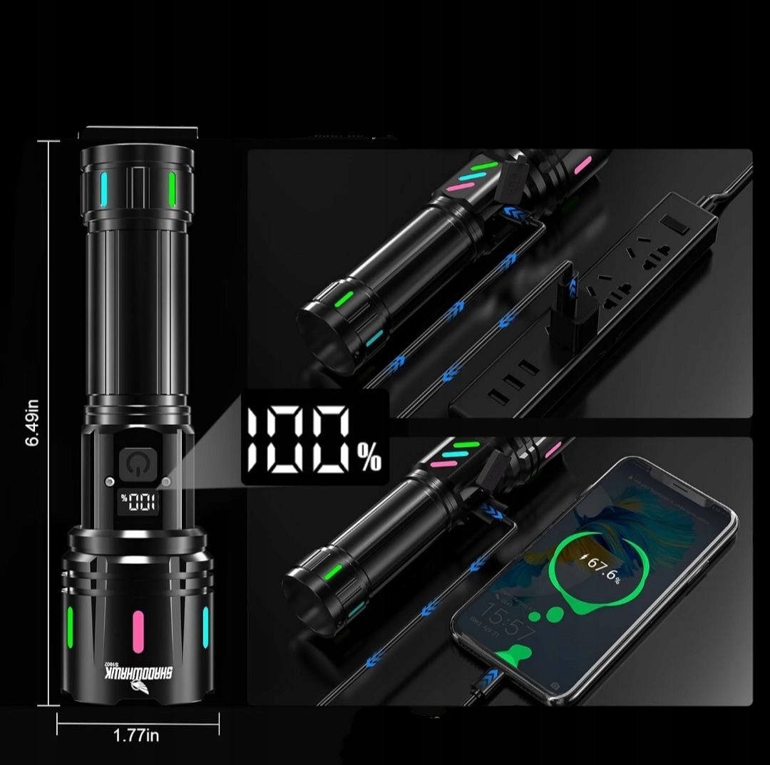 ✅Latarka Shadowhawk S1007 wykorzystuje najnowocześniejszy chip LED XHM90.2, który zapewnia znacznie bardziej stabilne źródło światła i silniejszą penetrację światła niż inne lampy dostępne na rynku.