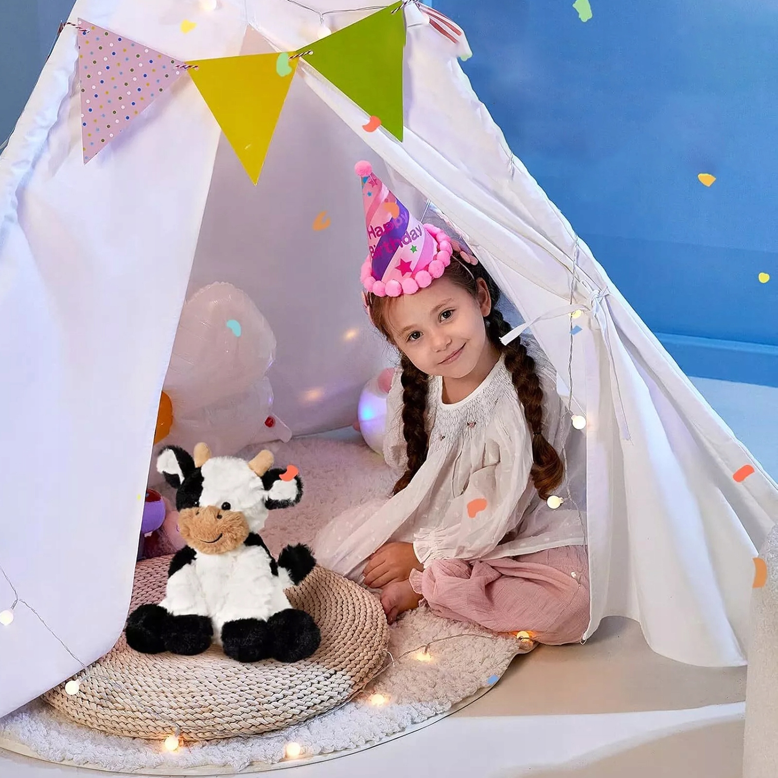 Pluszowa krowa to nie tylko zabawka – świetnie prezentuje się także jako dekoracja pokoju dziecięcego. 🧸 Dodaje wnętrzu ciepła, radości i domowej atmosfery.