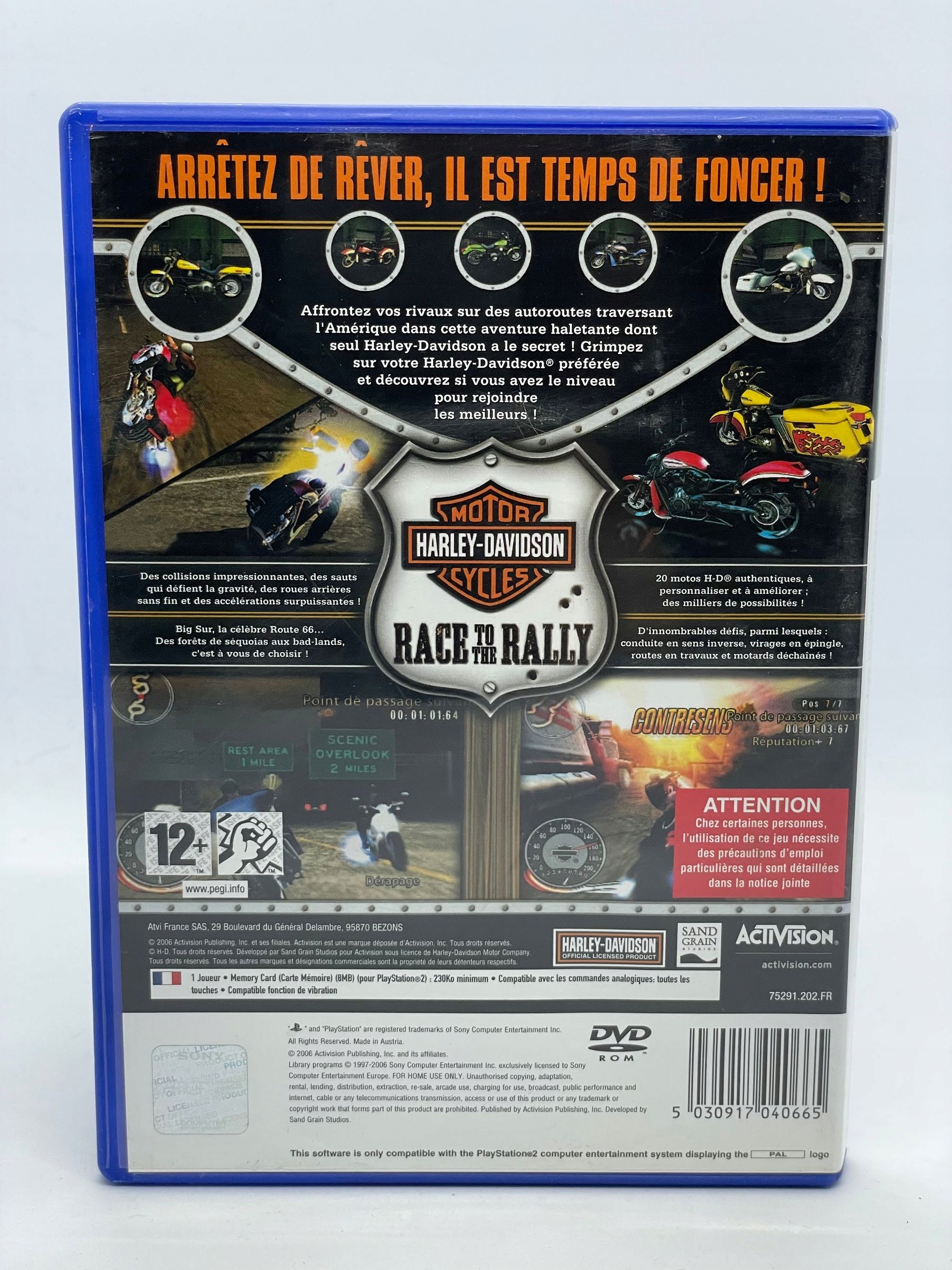Przygotuj się na grę Harley Davidson: Race to the Rally (wersja francuska, niemiecka, włoska, hiszpańska) na PlayStation 2 i poczuj dreszczyk emocji podczas wyścigów.
