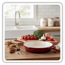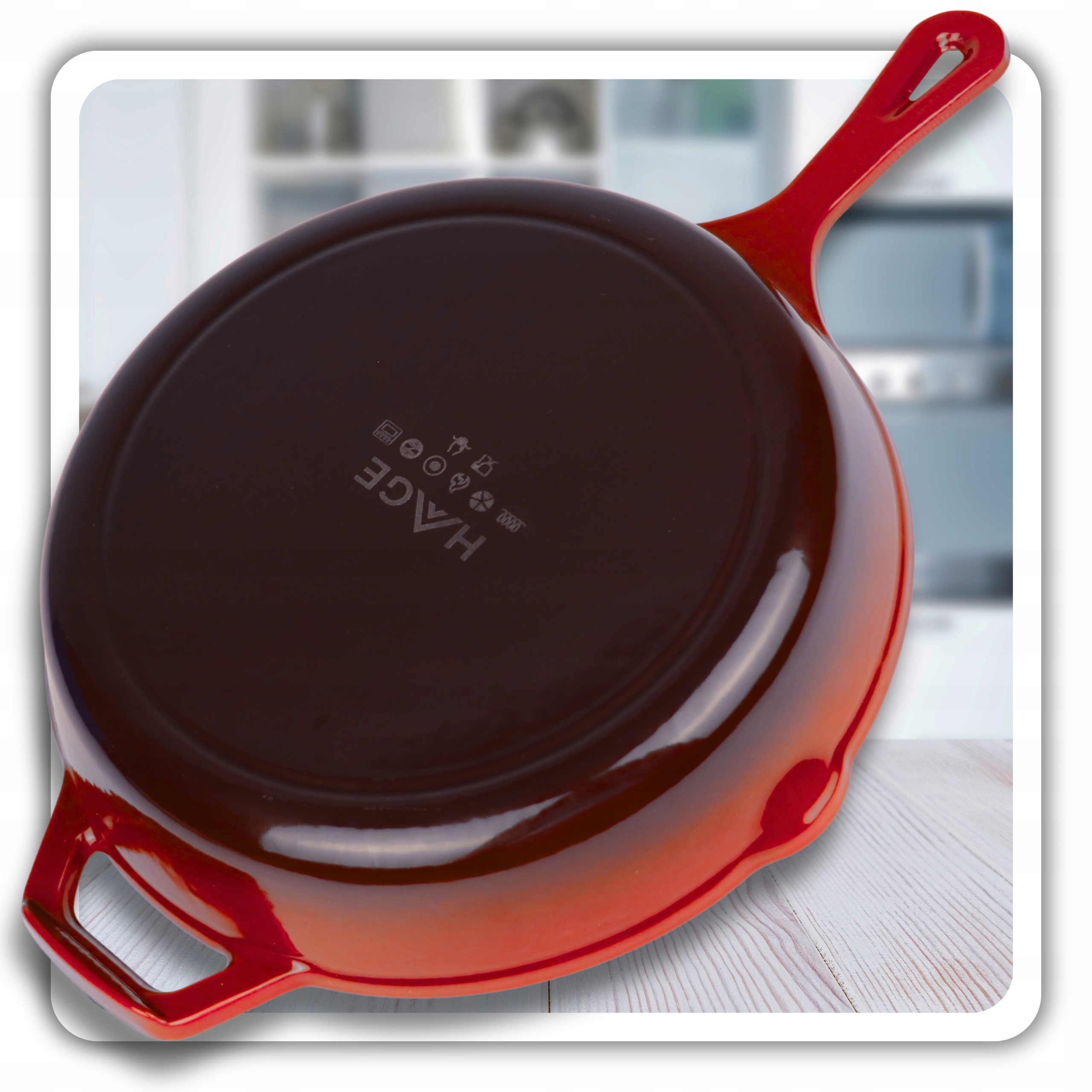 Odkryj trwałą patelnię żeliwną 26 cm w eleganckim czerwonym kolorze. Żeliwo doskonale rozprowadza i utrzymuje ciepło, gwarantując perfekcyjne rezultaty smażenia, duszenia i zapiekania. Emaliowana powłoka chroni przed korozją i jest wyjątkowo łatwa w czyszczeniu. Używaj jej na wszystkich kuchenkach, w tym indukcyjnych, oraz bezpiecznie w piekarniku.