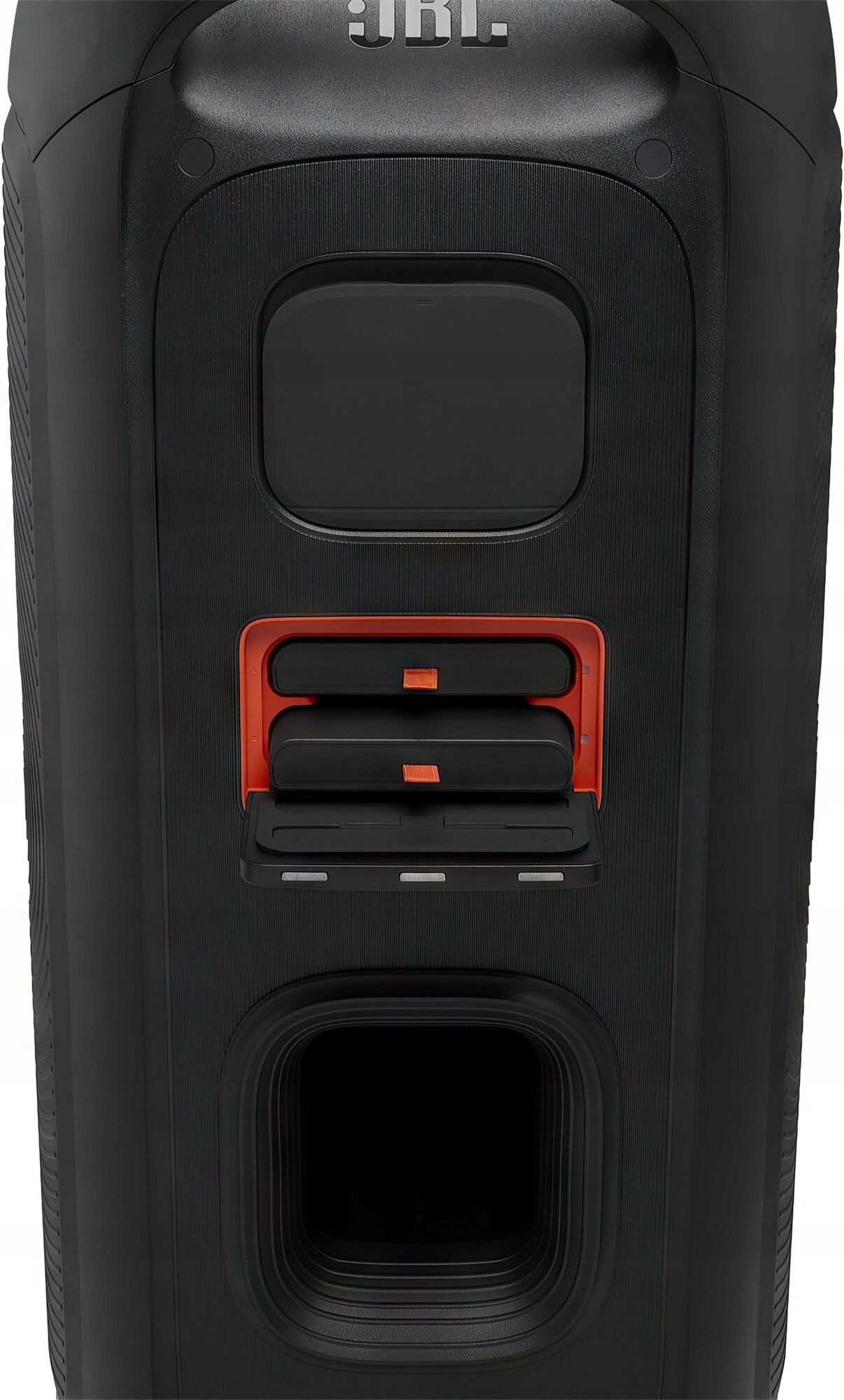 Doskonały dźwięk JBL Pro Sound o mocy 800 watów brzmi głośno, czysto i z głębokim basem, dzięki dwóm potężnym 9-calowym głośnikom niskotonowym. Głośniki wysokotonowe dbają o to, żeby góra była ostra i wyraźna, więc każdy numer brzmi idealnie, a parkiet ani na chwilę nie pustoszeje. Futurystyczne efekty świetlne to dodatkowe show! Kolorowe gwiazdy, płynące smugi i stroboskopy, które tańczą w rytm muzyki. Zupełny odjazd! A do tego odporność na zachlapania IPX4. Oznacza to, że zarówno w parku, czy przy basenie, parę kropel wody nie zrobi wrażenia na mocarnym JBL Partybox 720. Wymienne akumulatory (sprzedawane oddzielnie) gwarantują nawet 15 godzin grania. Głośnik PartyBox 720 jest gotowy do pracy na akumulatorze, kiedy tylko się tego potrzebuje. Działa na dwa akumulatory JBL Battery 600 Duo (sprzedawane oddzielnie), więc można odpalić imprezę nawet tam, gdzie nie ma gniazdka. A kiedy wpadnie większa ekipa, dźwięk też się zwiększa.