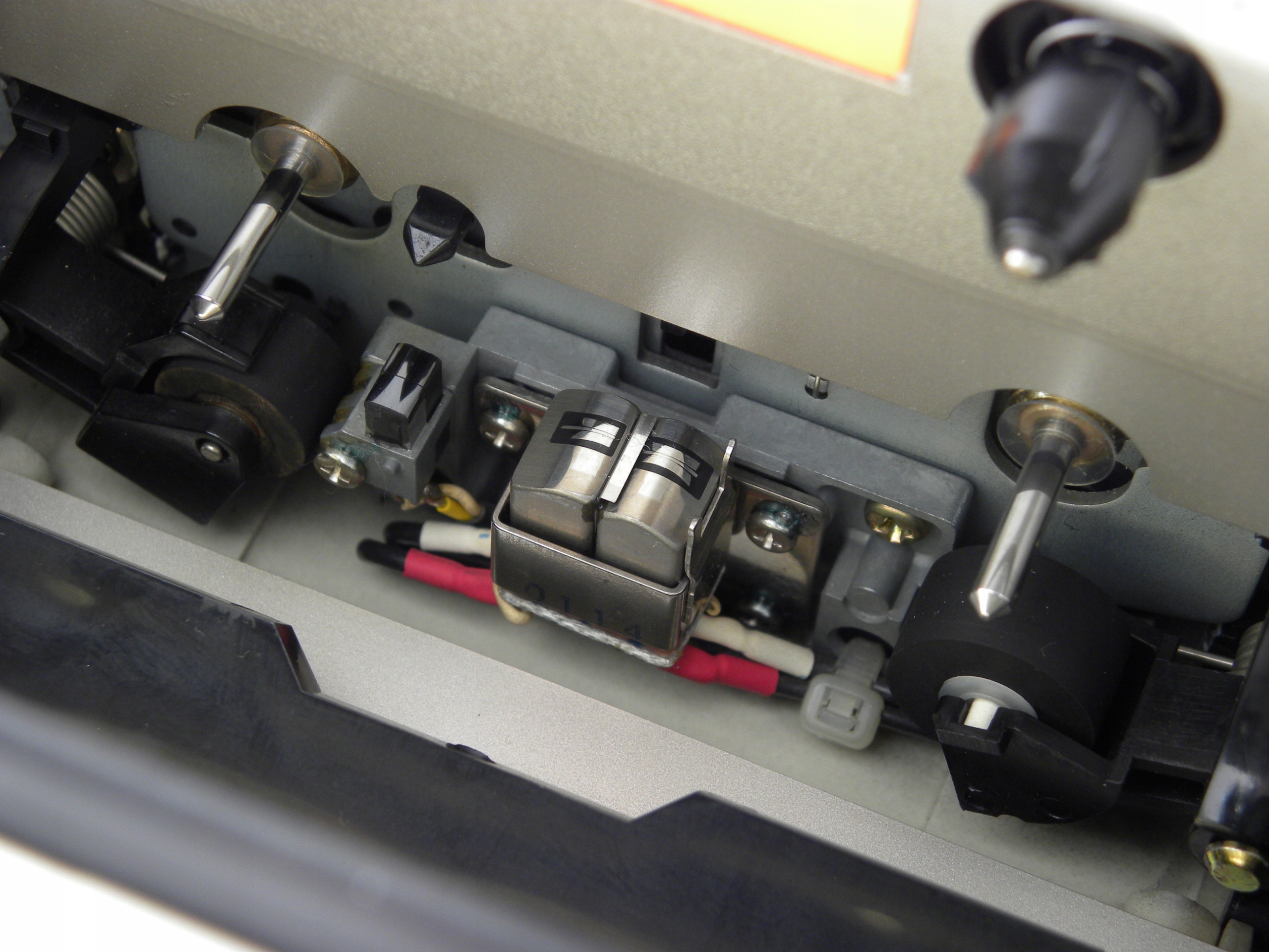 Jest tu zastosowany cichy mechanizm Closed Loop Dual Capstan. 3 silniki, 2 wałki i 3 głowice.