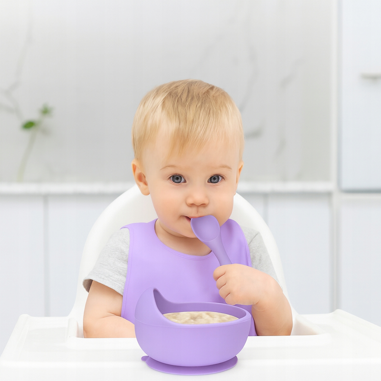 Miseczka oraz talerz w kształcie kraba zostały wyposażone w specjalne przyssawki na spodzie, które zapewniają im stabilną przyczepność do powierzchni. Dzięki temu Twoje dziecko nie zrzuci na podłogę swojej porcji posiłku.