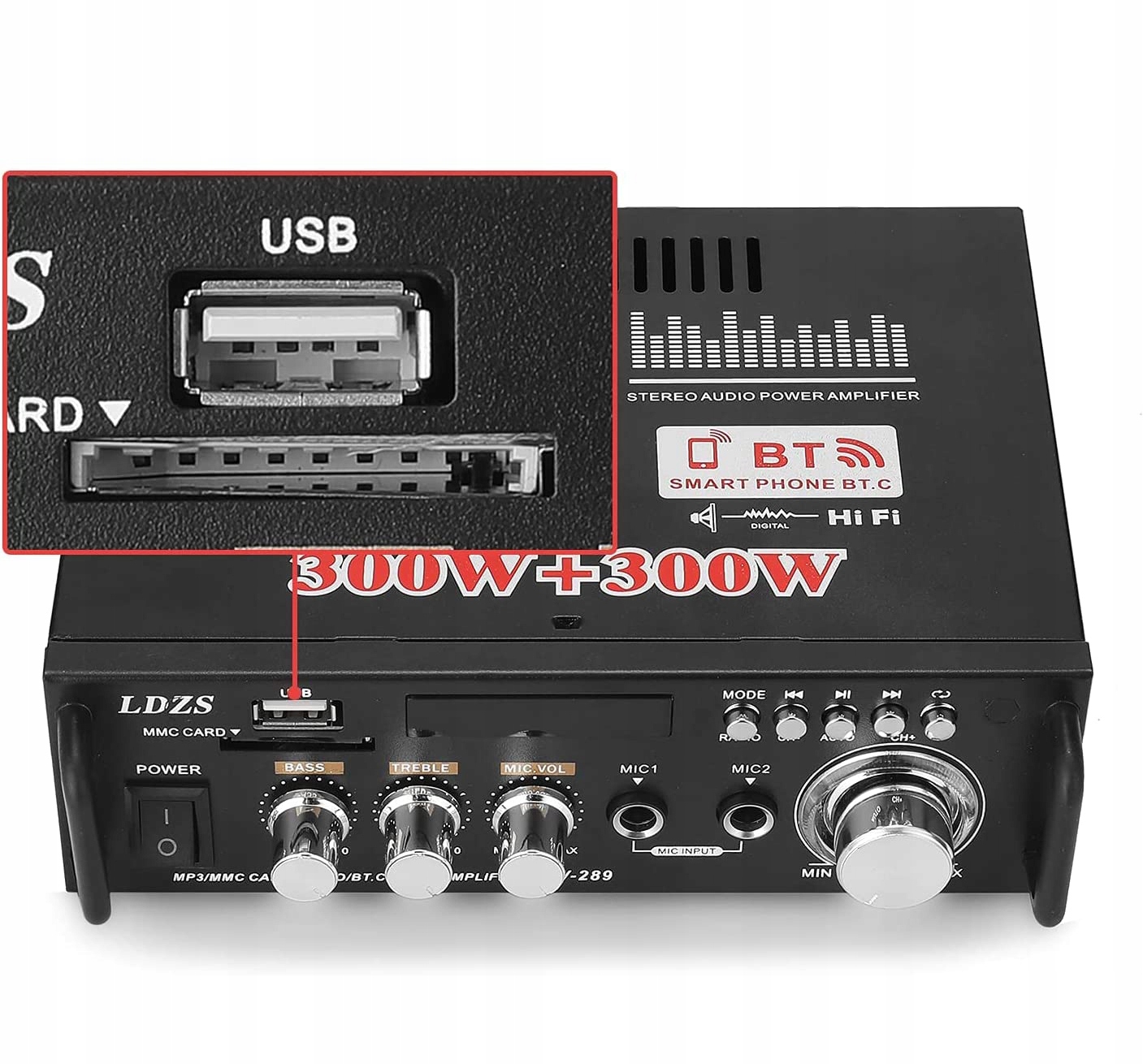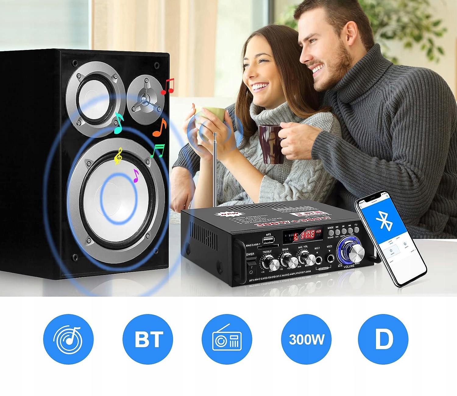 MINI WZMACNIACZ BLUETOOTH 5.0 STEREO AUDIO 2-KANAŁOWY PRZENOŚNY RADIO FM O WYSOKIEJ WIERNOŚCI WEJŚCIE NA KARTĘ SD/USB