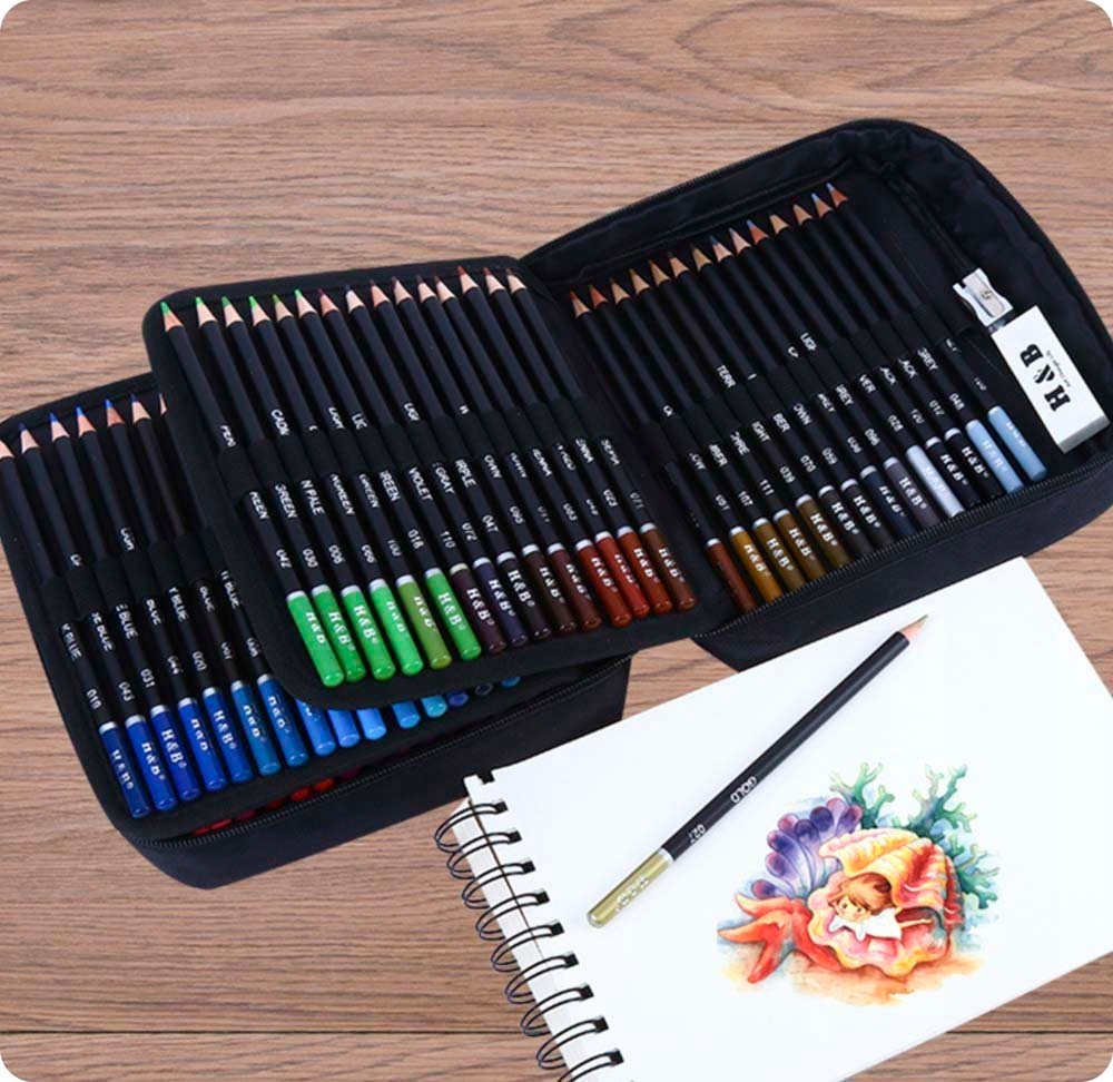 Zestaw profesjonalnych kredek marki H&B zapakowany w wygodne zapinane na zamek etui dzięki któremu wygodnie zabierzesz kredki ze sobą. Wyróżnia się bogatą paletą aż 120 pięknych kolorów. Wysokiej jakości barwniki zapewniają piękne, wyraźne barwy. Dzięki specjalnym przegródkom zachowasz porządek i szybko znajdziesz właściwą kredkę.