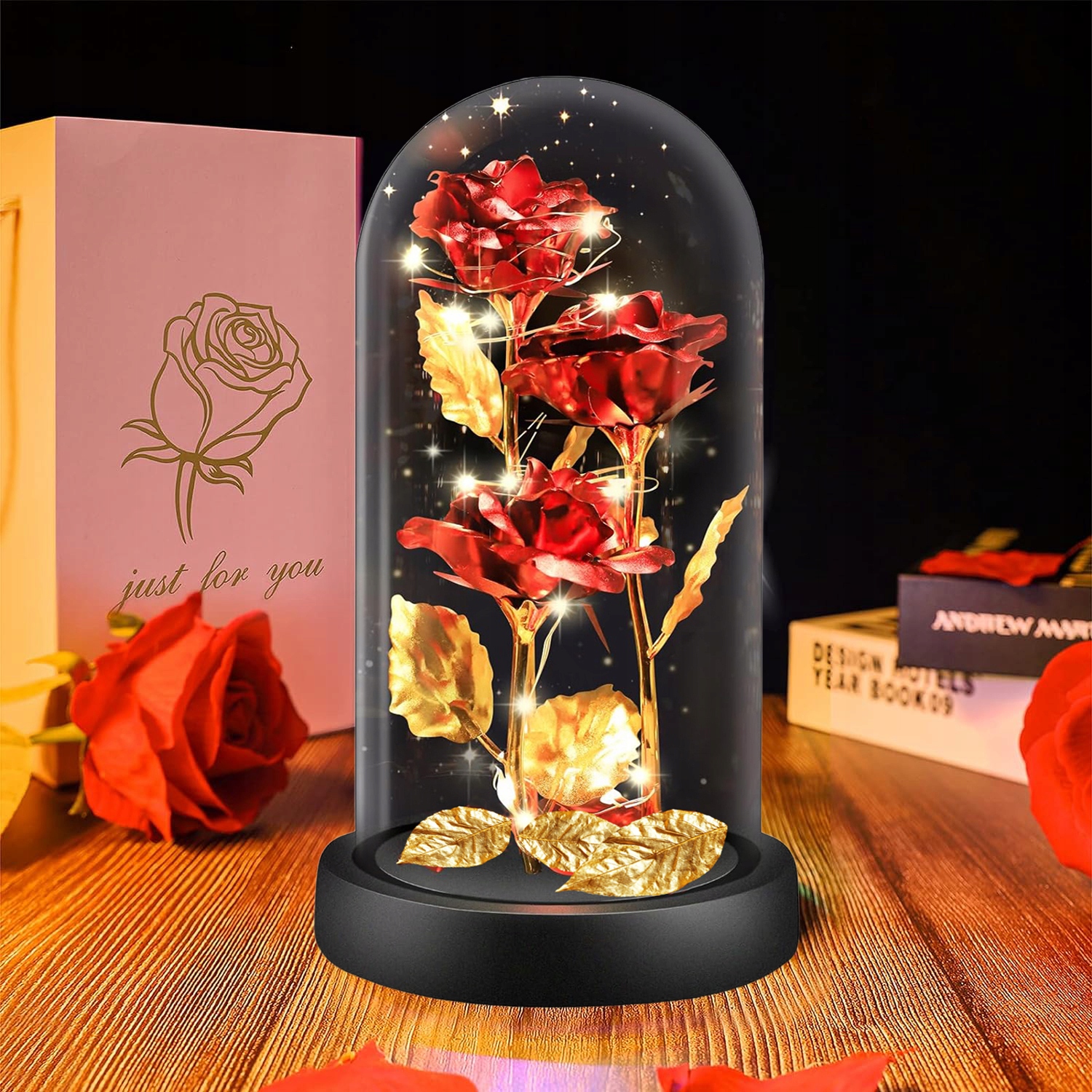 Szklana kopuła nie tylko chroni różę przed zniszczeniem i kurzem, co sprawia, że prezent zachowuje swoją wartość przez długi czas, ale także dodaje elegancji i unikalnego charakteru otoczeniu, w którym się znajduje. Jej zamknięta, bezpieczna przestrzeń wpasowuje się harmonijnie w design każdego pomieszczenia, nadając mu wyjątkowy wygląd.