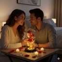 Róża otoczona światłem LED, prezentuje się nie tylko estetycznie, ale wprowadza również nowy wymiar do jej prezentacji. Diody LED otaczające różę nadają kwiatowi subtelny i ciepły połysk, co stanowi dodatkowy element dekoracyjny.