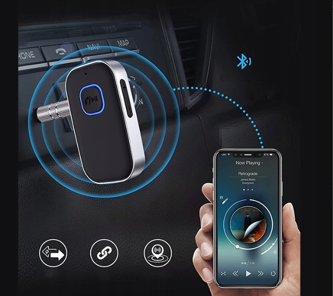 Odbiornik bezprzewodowy Bluetooth w standardzie 5.0 i wyjściem AUX to wielofunkcyjne urządzenie które da Ci komfort jazdy na jaki zasługujesz.