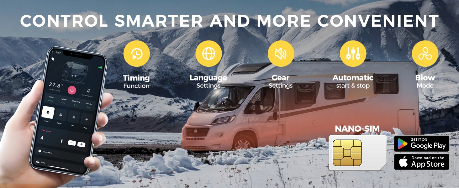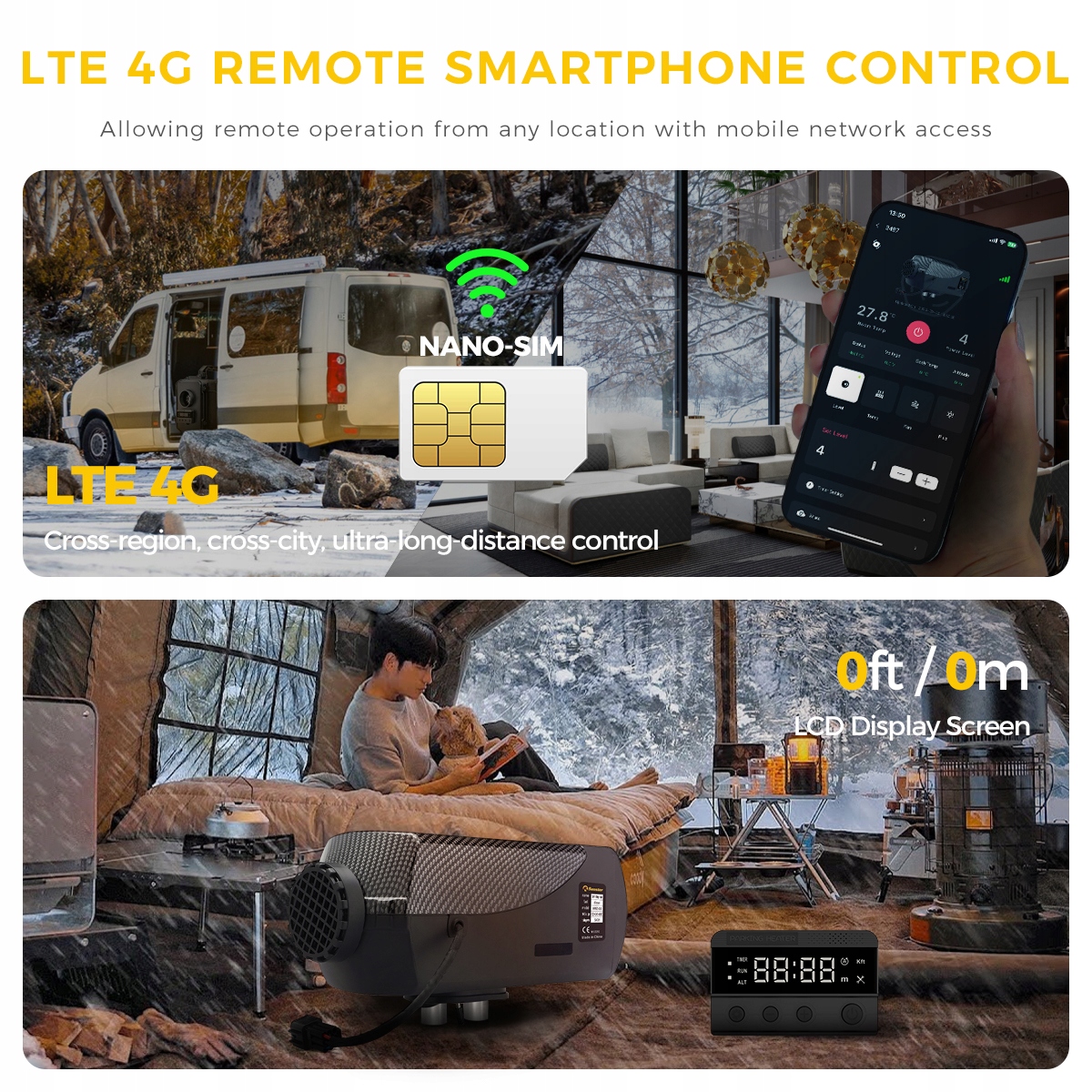 Steruj ogrzewaniem z dowolnego miejsca za pomocą smartfona i karty SIM. Włączaj, wyłączaj, reguluj ustawienia i monitoruj pracę urządzenia bez ograniczeń odległości — idealne rozwiązanie dla pojazdów, kamperów i garaży.