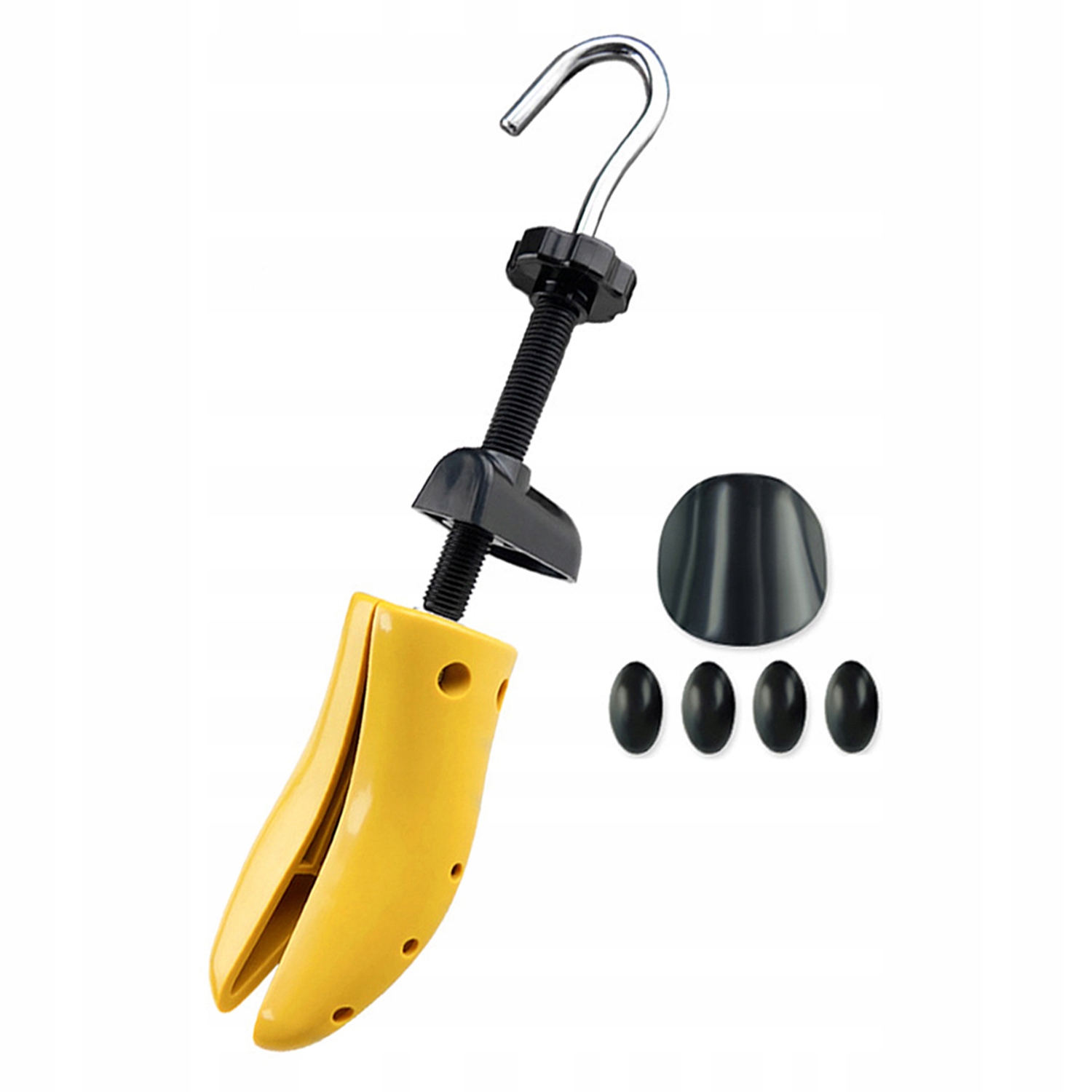 Za pomocą czarnego pokrętła wydłużysz lub skrócisz prawidło, a metalowy haczyk odpowiada za regulację szerokości. Dzięki temu dopasujesz but do kształtu swojej stopy i szybko pozbędziesz się ucisku.