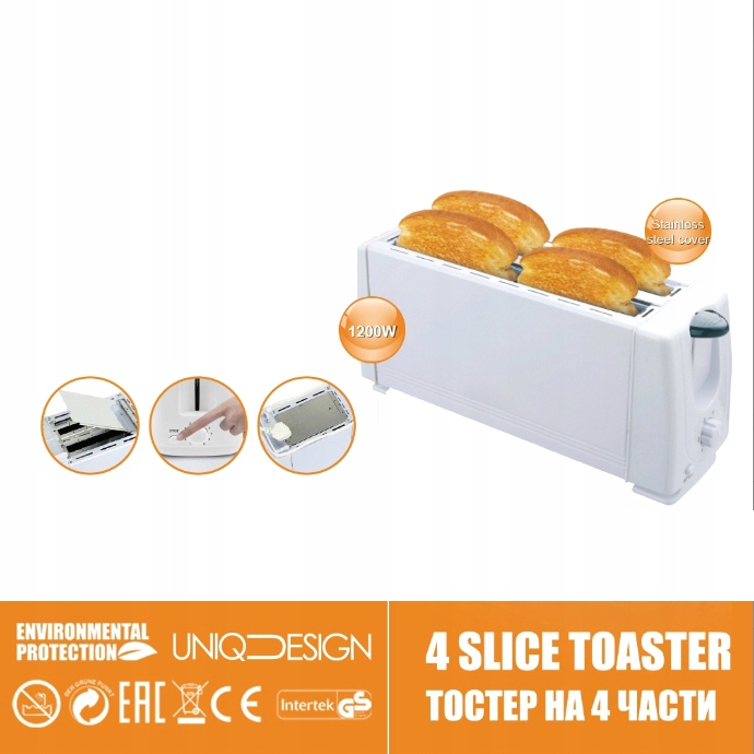 5. Toster ma cztery tostery, które mogą upiec do czterech kromek chleba jednocześnie w krótszym czasie, aby przygotować śniadanie dla rodziny.
