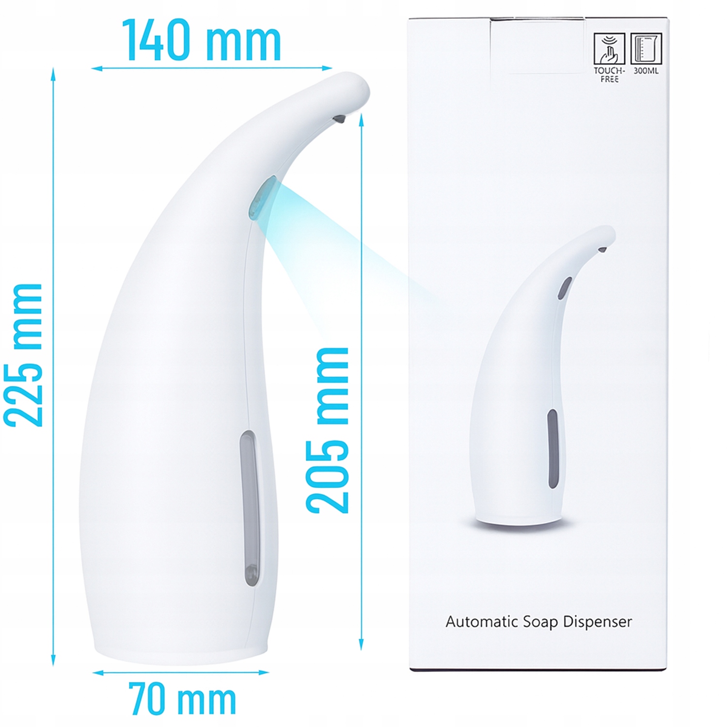 Dozownik jest dostosowany do różnego rodzaju płynów – możesz napełnić go zarówno klasycznym mydłem w płynie, jak i środkiem do dezynfekcji rąk. Doskonale sprawdzi się nie tylko w łazience czy kuchni, ale również na biurku w miejscu pracy, gdzie oprócz swojej praktycznej funkcji stanie się także nowoczesnym elementem dekoracyjnym.Urządzenie mieści 300 ml płynu, a przy każdym kontakcie z sensorem wydaje od 1 do 2 ml, co zapewnia wygodne i oszczędne użytkowanie.
