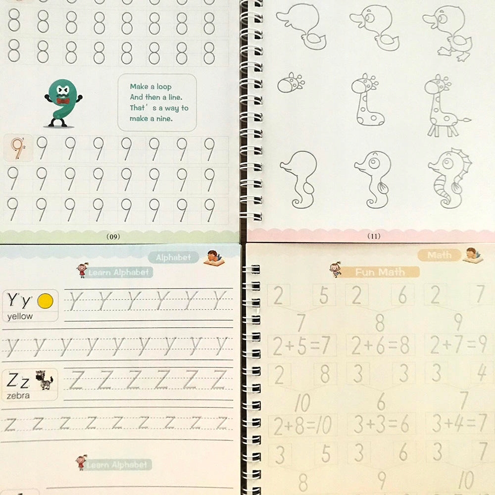 ✅ 4 książki do nauki pisma odręcznego (alfabet + numery + matematyka + rysunek)