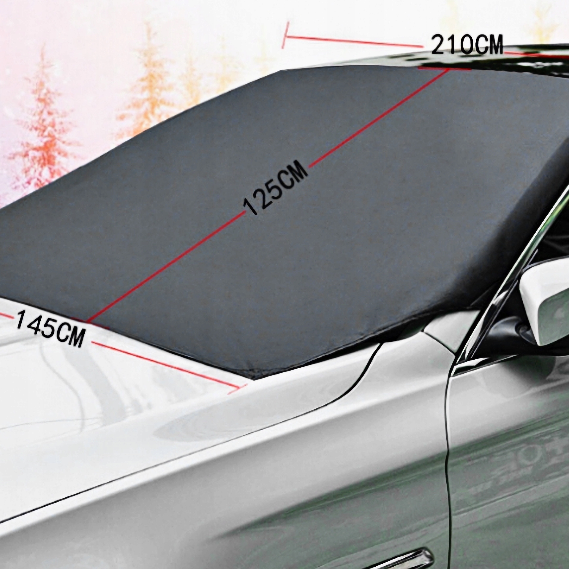 💡 Sposób montażu: Przyłóż matę do szyby tak, by magnesy przylegały do karoserii. Boczne skrzydełka włóż między drzwi – osłona nie odleci nawet przy silnym wietrze!