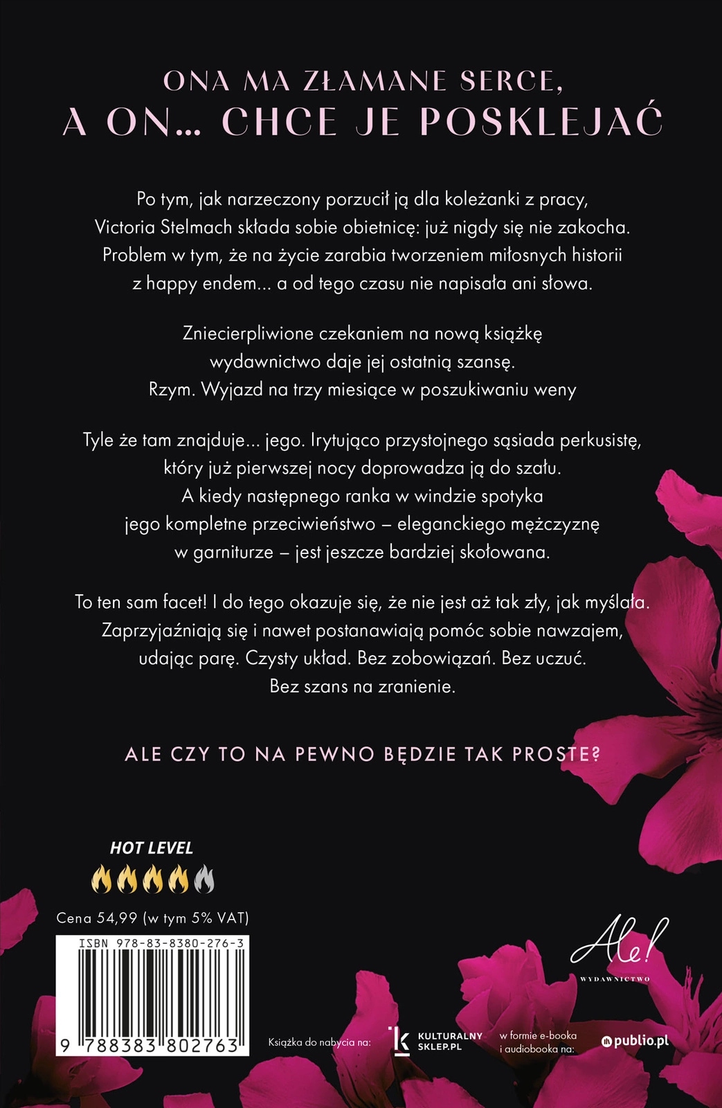 Rzym. Wyjazd na trzy miesiące w poszukiwaniu weny. Tyle że tam znajduje… jego. Irytująco przystojnego sąsiada perkusistę, który już pierwszej nocy doprowadza ją do szału. A kiedy następnego ranka w windzie spotyka jego kompletne przeciwieństwo – eleganckiego mężczyznę w garniturze – jest jeszcze bardziej skołowana.