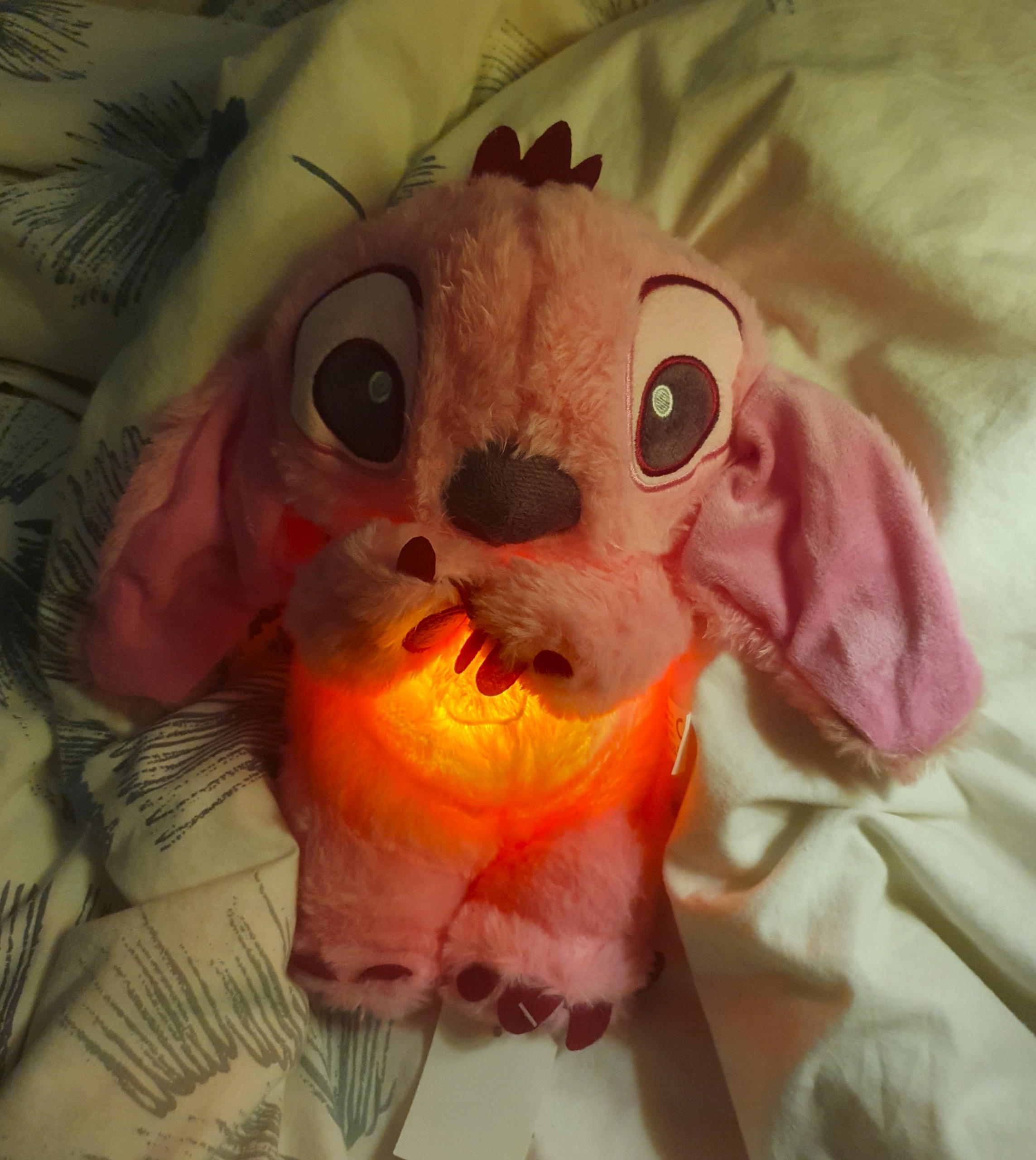 ❇️ Nasza oddychająca maskotka Stich Szumiś to idealne rozwiązanie! Dzięki funkcji oddychania, poruszającego się brzuszka i przyjemnemu materiałowi, Twoje dziecko poczuje się komfortowo i spokojnie. Idealna do przytulania, zarówno w nocy, jak i w ciągu dnia!