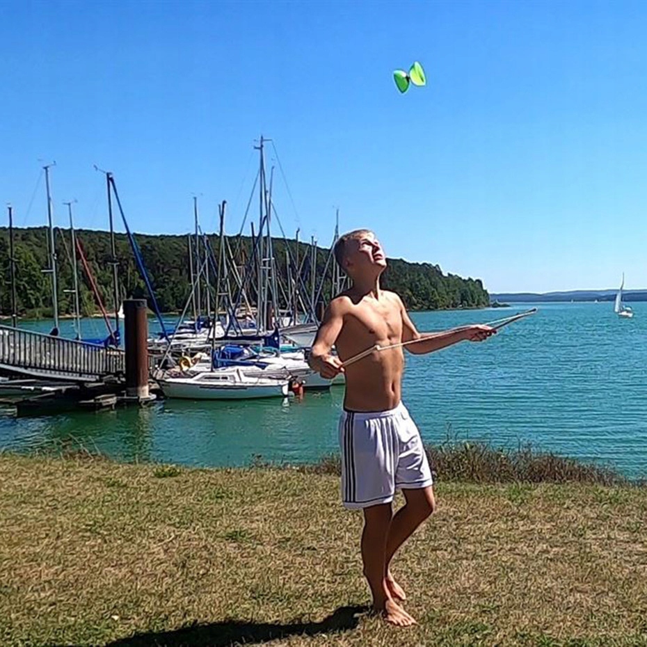 Model będący krewnym jo-jo pozwoli ćwiczyć zręczność i refleks w ogrodzie, parku czy też na plaży.