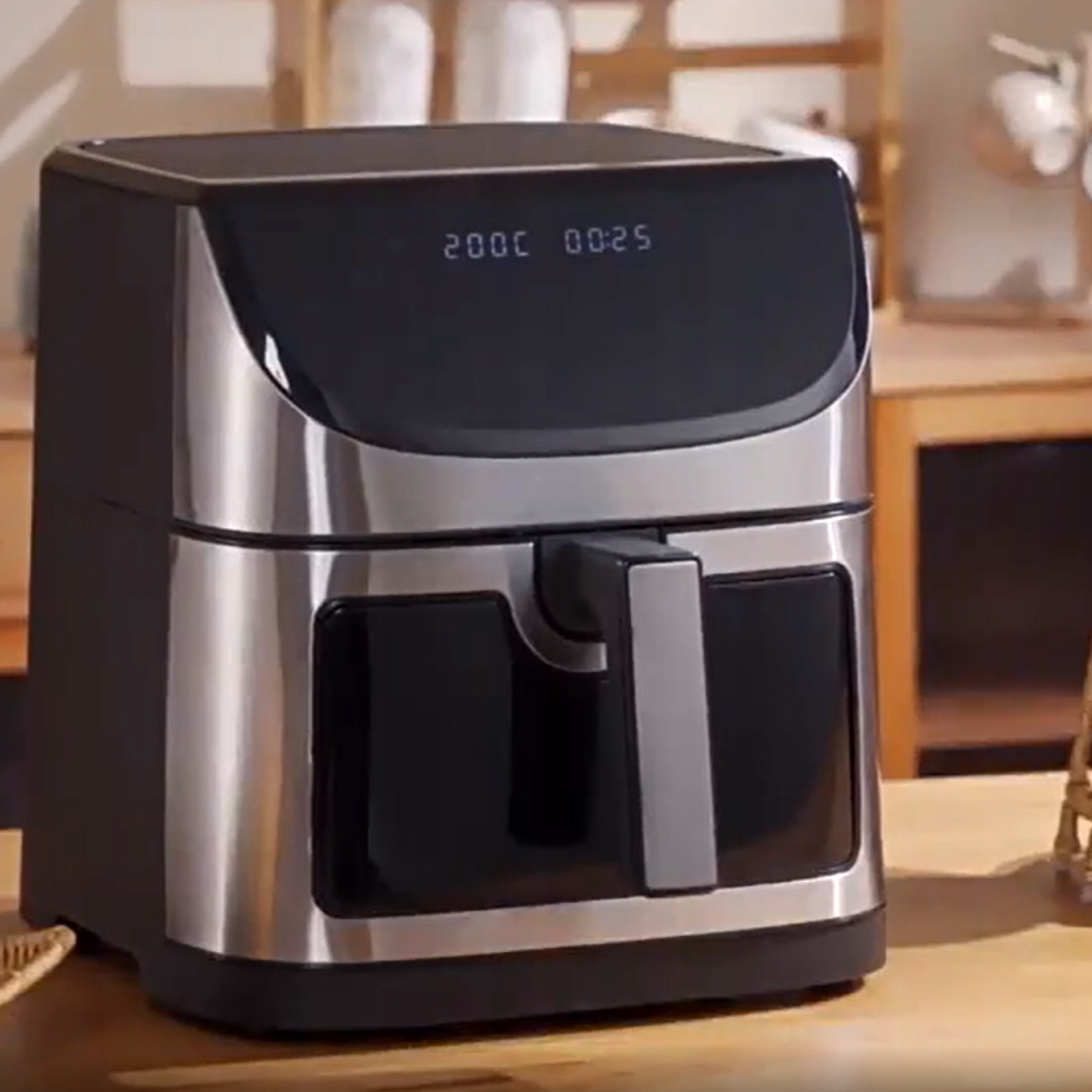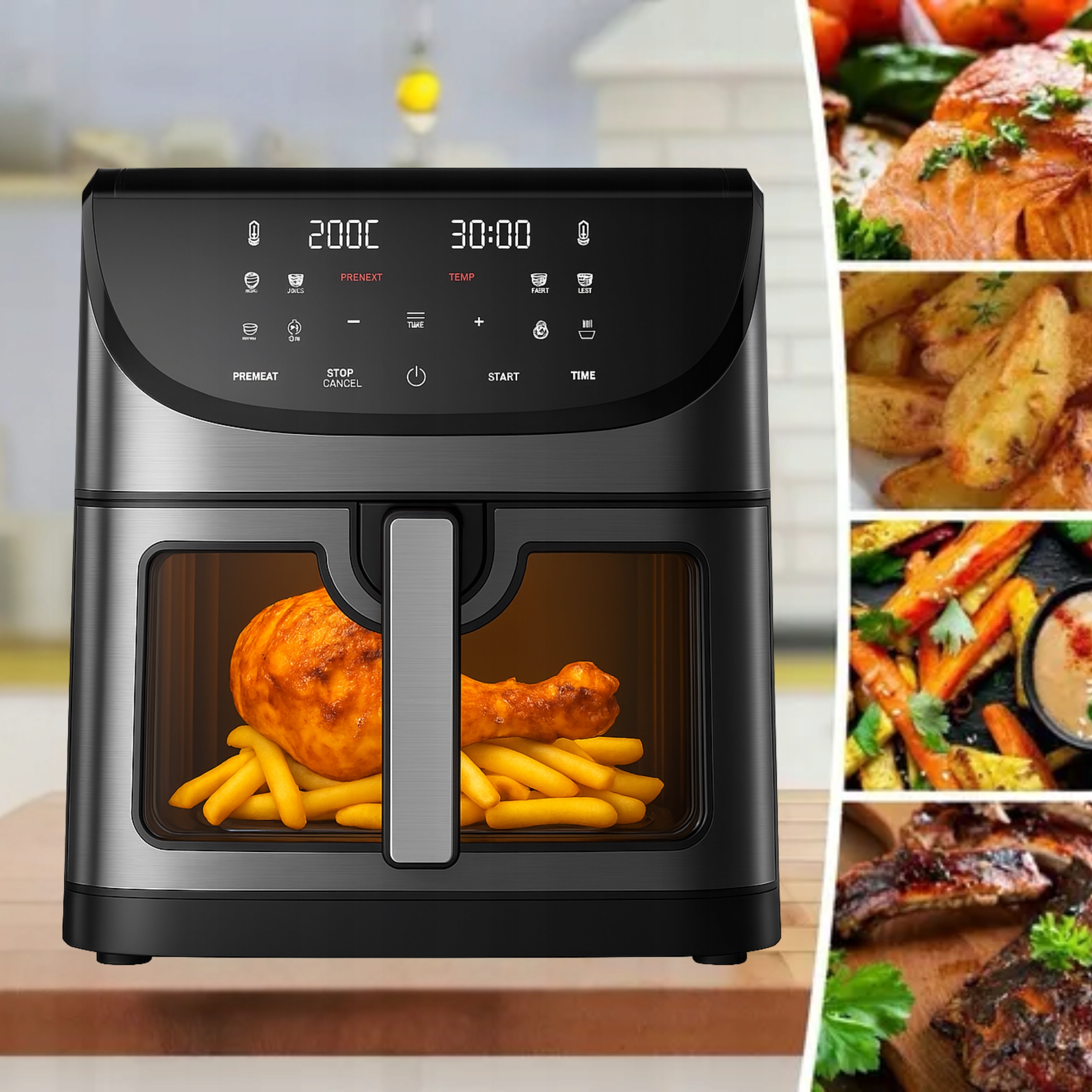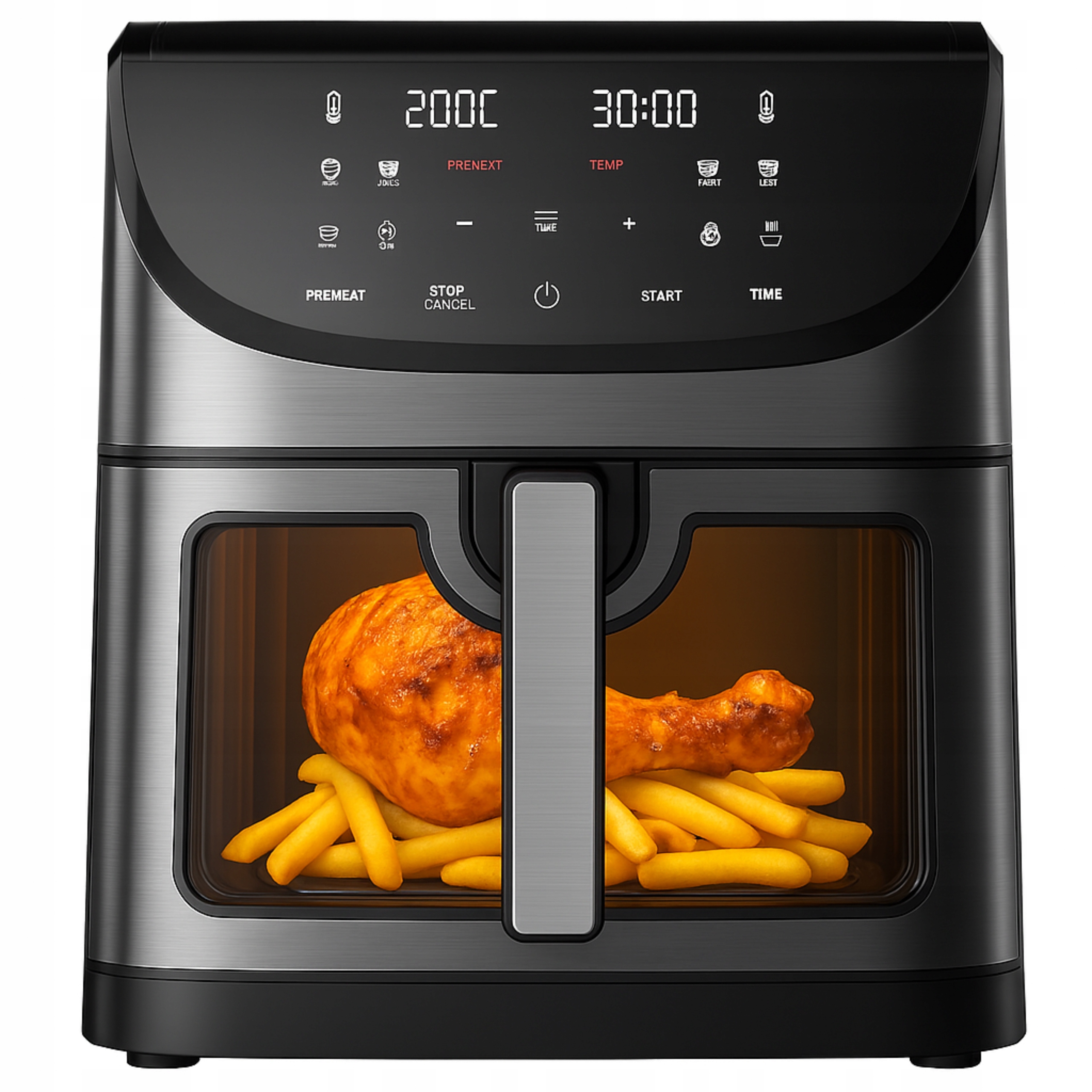 Dzięki mocy 1800W, dużej pojemności 8 litrów oraz innowacyjnemu systemowi cyrkulacji gorącego powietrza, każdy posiłek będzie chrupiący na zewnątrz i soczysty w środku – bez tłustych oparów i zapachu smażenia.