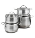 Zestaw garnków Zwieger Practi Plus to połączenie eleganckiego stylu, niezawodnej jakości i wyjątkowej funkcjonalności. Jeśli cenisz sobie solidność i nowoczesne rozwiązania w kuchni, ten 8-elementowy zestaw jest właśnie dla Ciebie! Wykonany z najwyższej jakości stali nierdzewnej SS 304 (18/8), znanej ze swojej odporności na korozję i wytrzymałości, zapewni Ci komfort gotowania przez wiele lat.
