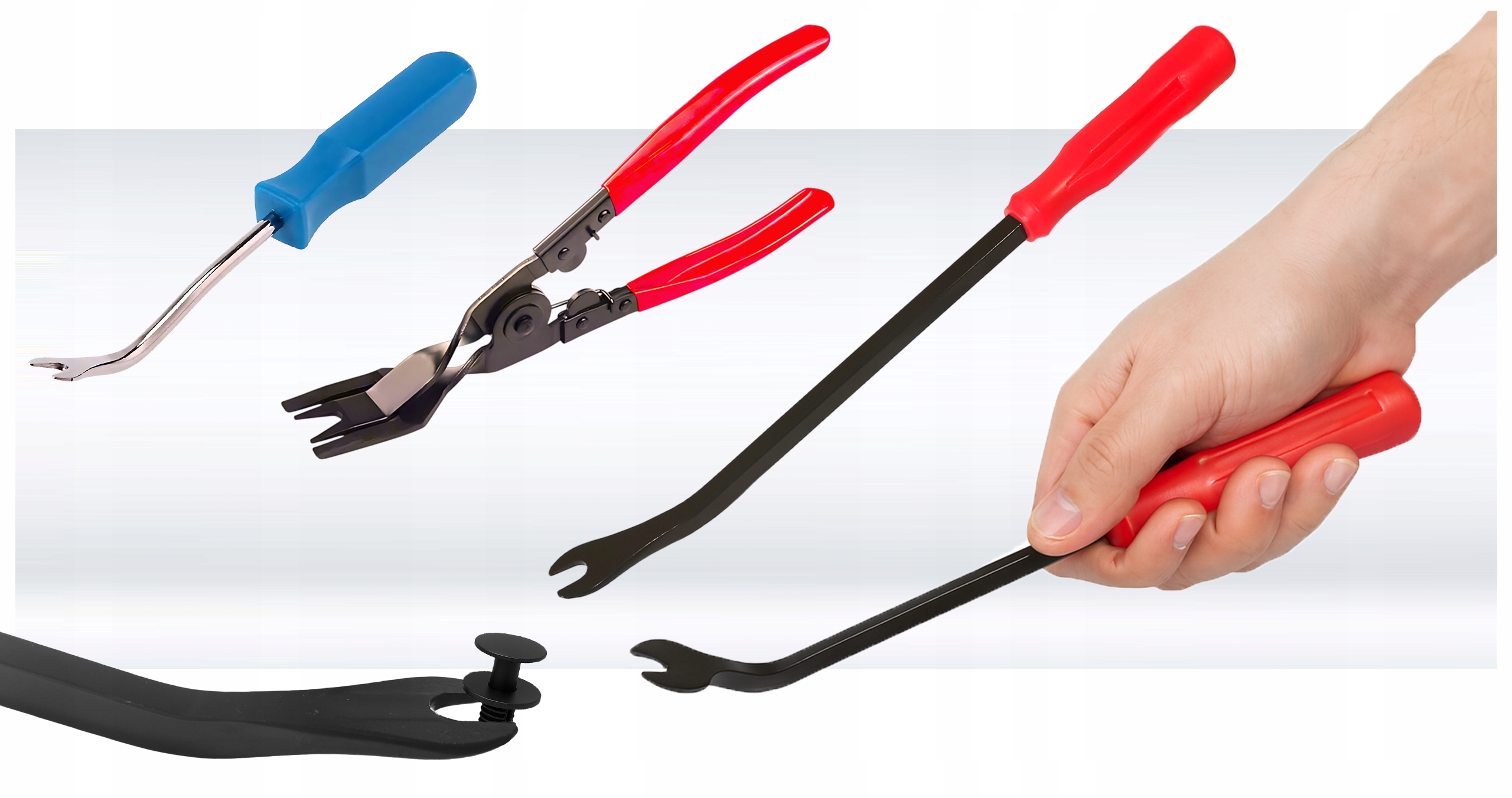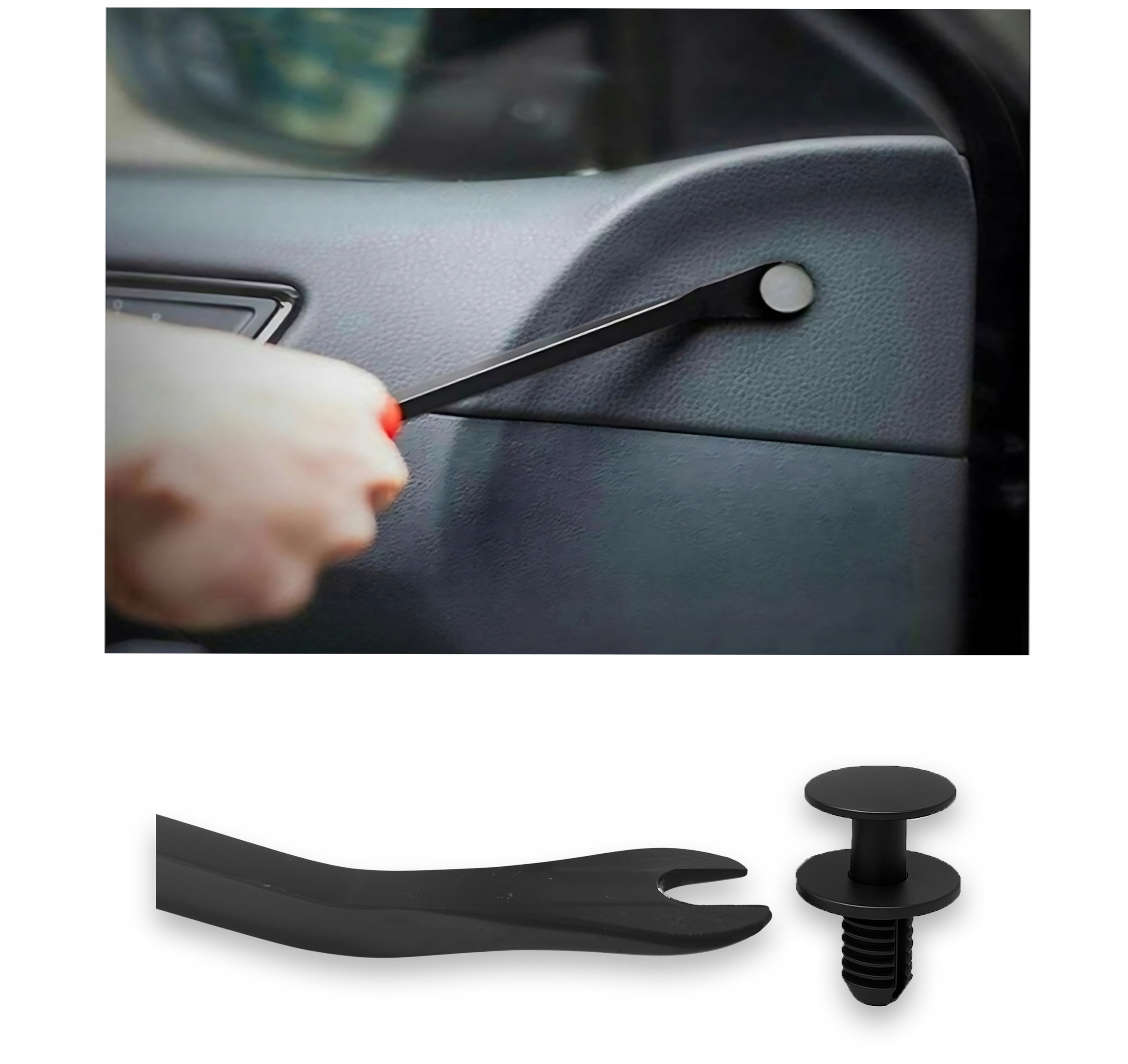 Zestaw sprawdzi się przy demontażu drzwi, podsufitki, bagażnika czy boczków.