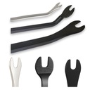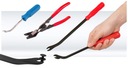 Zestaw składa się z trzech łomów o różnych profilach oraz szczypiec, które pozwalają na łatwy demontaż elementów tapicerki i plastikowych mocowań.