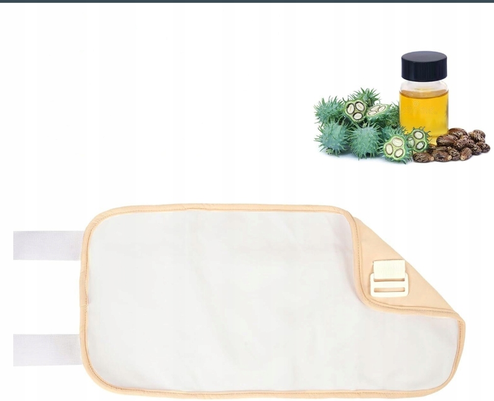 2. Połóż okład na płaskiej powierzchni, miękka bawełnianą stroną do góry, wlej 1-2 łyżki organicznego oleju rycynowego na bawełnianą stronę okładu.