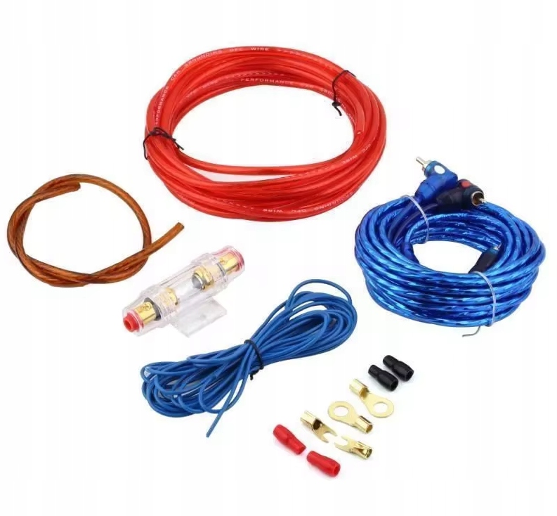Zawiera wszystkie niezbędne przewody i akcesoria do instalacji wzmacniacza oraz subwoofera w samochodzie.