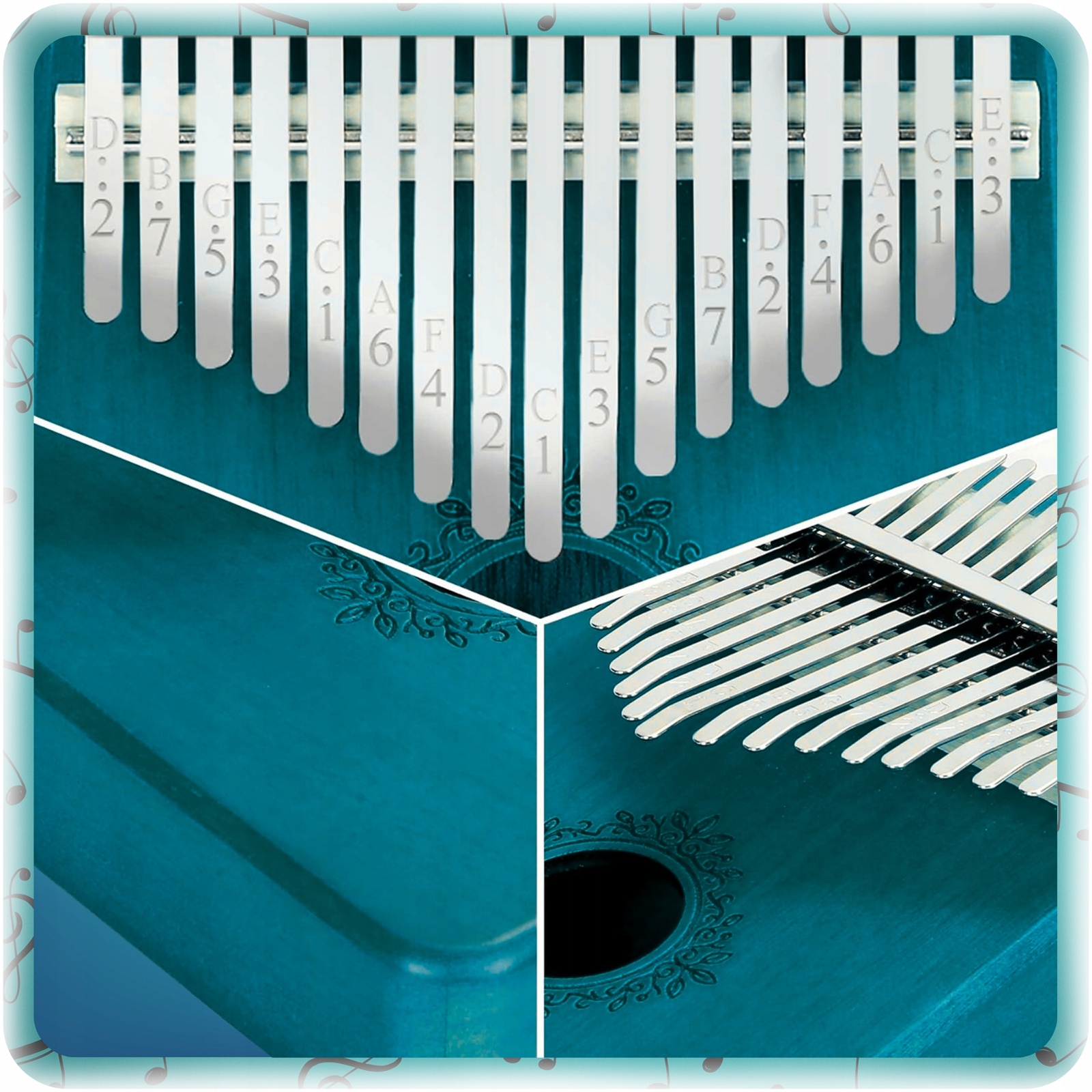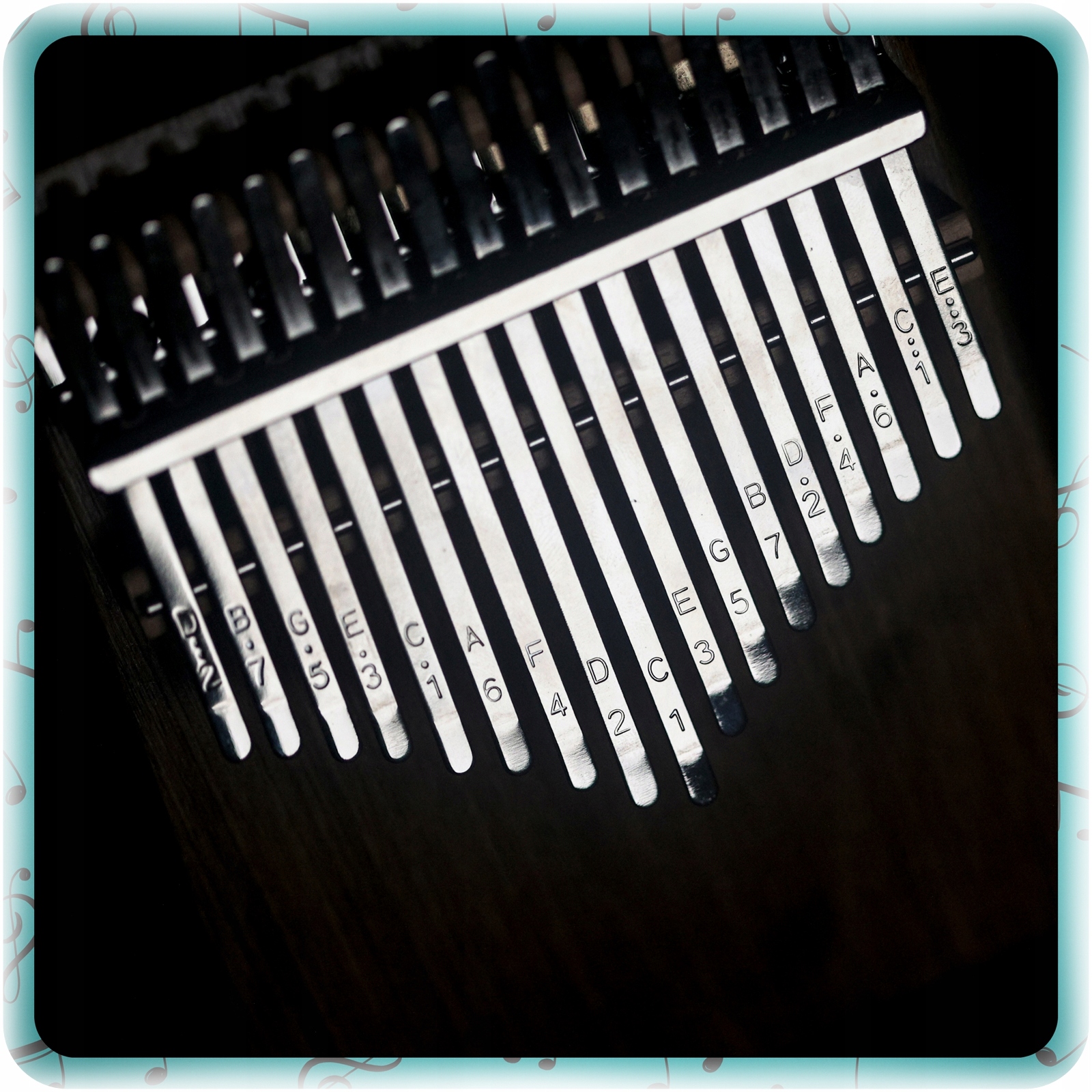 Metalowe języczki (klawisze) są precyzyjnie osadzone, dzięki czemu każdy ton jest czysty i harmonijny.