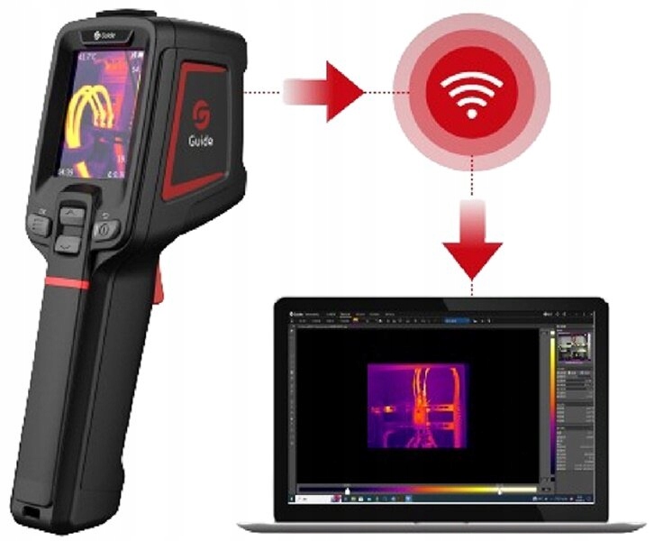 Kamera termowizyjna GUIDE SENSMART E1+ 120 x 90 px IR, LCD 2.4, Laser, USB-C to kompaktowy, przenośny rejestrator termowizyjny przeznaczony do dokładnych i szybkich bezkontaktowych pomiarów temperatury w zakresie od -20 °C do 400 °C.