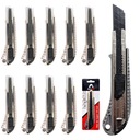 Nóż do zastosowań profesjonalnych i amatorskich przeznaczony do cięcia tapet, papieru, tkanin, folii, taśm , wykładzin itp. Tego typu nożyk powinien znaleźć się na wyposażeniu każdego magazyniera oraz być na każdym domowym warsztacie. Aby zapewnić idealną ostrość ostrze składa się z 8 segmentów, które należy odłamać w przypadku gdy jakość cięcia znacząco spadnie. Dzięki grubości ostrza 0,5 mm ostrze nie wyłamuje się szybko co zapewnia stabilonść pracy. Nożyk posiada także blokadę, aby zapewnić cięcie bez efektu przesuwania się ostrza.