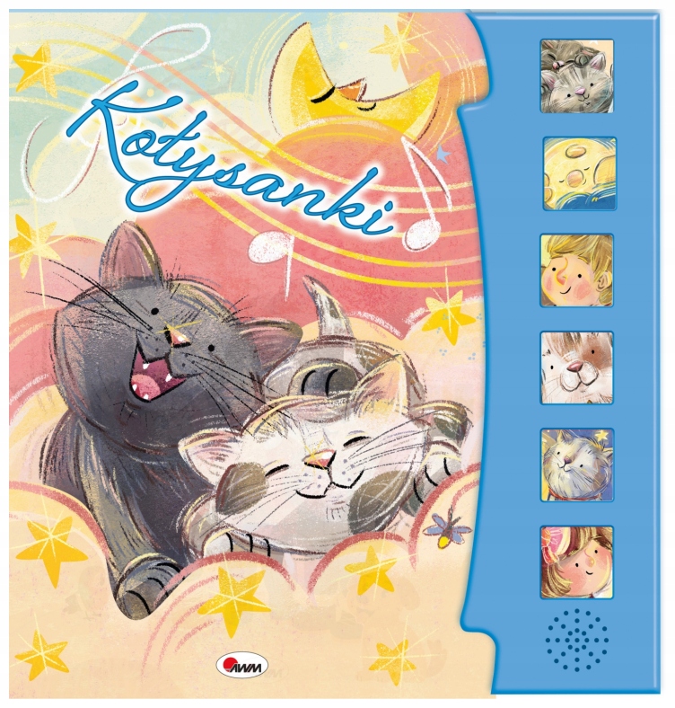 Książeczka kartonowa z PANELEM DŹWIĘKOWYM!W środku teksty znanych i lubianych przez dzieci KOŁ ążka wycisza wprowadza w nastrój UŁATWIAJĄCY ZASYPIANIE.W książce znajdują się teksty KOŁYSANEK. Całość wzbogacona jest pięknymi, nastrojowymiILUSTRACJAMI. Książkę wyposażono w PANEL DŹWIĘKOWY. Po naciśnięciu przycisków maluszek usłyszy KOŁ ążka:•     Wycisza i ułatwia ZASYPIANIE•     zapoznaje z SZEŚCIOMA kołysankami  •     wspiera WSZECHSTRONNY ROZWÓJ dziecka•     rozwija WYOBRAŹNIĘ•     wzbogaca SŁOWNICTWOPiosenki:Seria książeczek dźwiękowych z piosenkami dla dzieci. Po naciśnięciu przycisków maluszek usłyszy pio-senki. Książeczki aktywizują, zachęcając do słuchania i śpiewania.