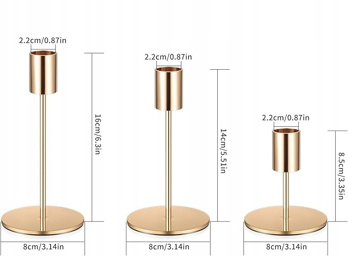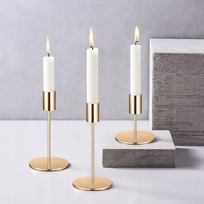 ✳️ Kompletny zestaw: W opakowaniu znajdują się 3 świeczniki o różnych wysokościach – pasują do świec w sztyfcie o średnicy ok. 2,2 cm.