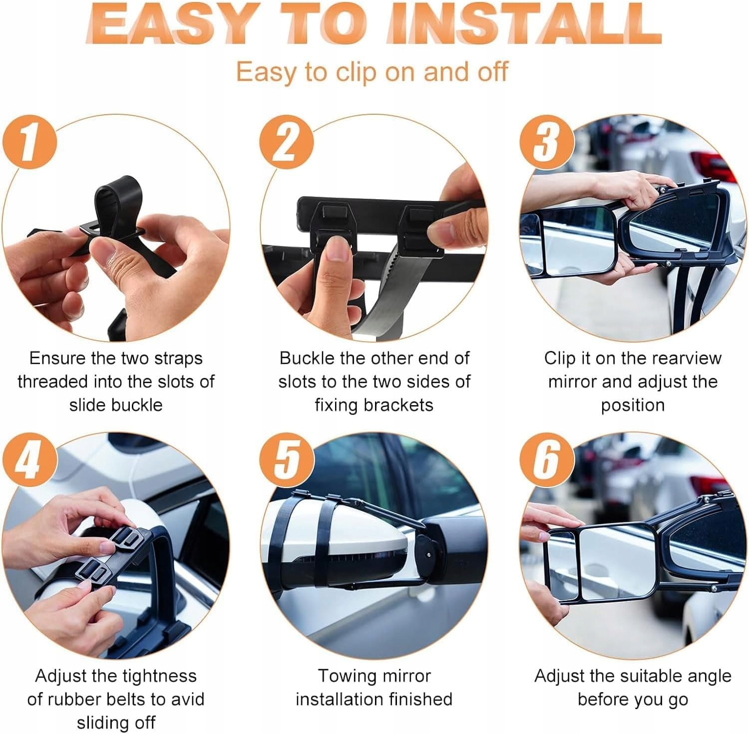 Lusterka te można łatwo zamontować i zdemontować, co czyni je niezwykle praktycznymi w użyciu. Idealne do użytku podczas podróży z przyczepami kempingowymi, boksami dla koni i innymi dużymi pojazdami. W zestawie otrzymujesz dwa lusterka, które zapewniają rozszerzoną widoczność, zwiększając komfort i bezpieczeństwo jazdy.