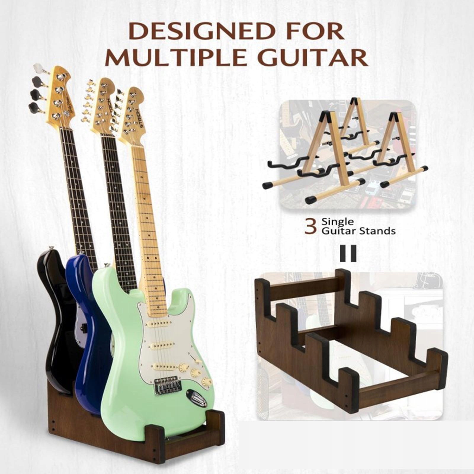 [Innowacyjna konstrukcja poziomowa]: Wyposażony w unikalną strukturę warstwową, ten stojak na gitarę bezpiecznie utrzymuje do 3 gitar jednocześnie. Konstrukcja pozwala na pełne wyeksponowanie instrumentów zarówno z przodu, jak i z tyłu
