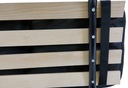 Materacyk jest stabilnie zamocowany za pomocą dwóch pasków zakładanych od spodu na deski a góra materacyka jest zakładana na oparcie