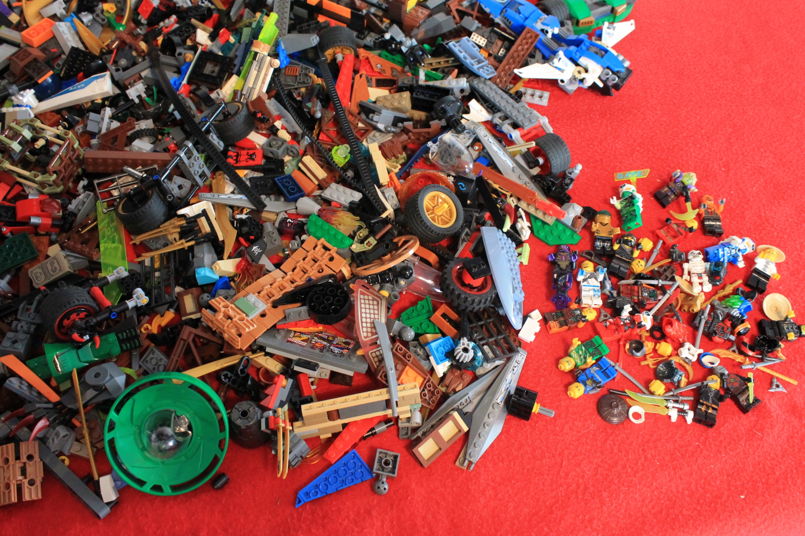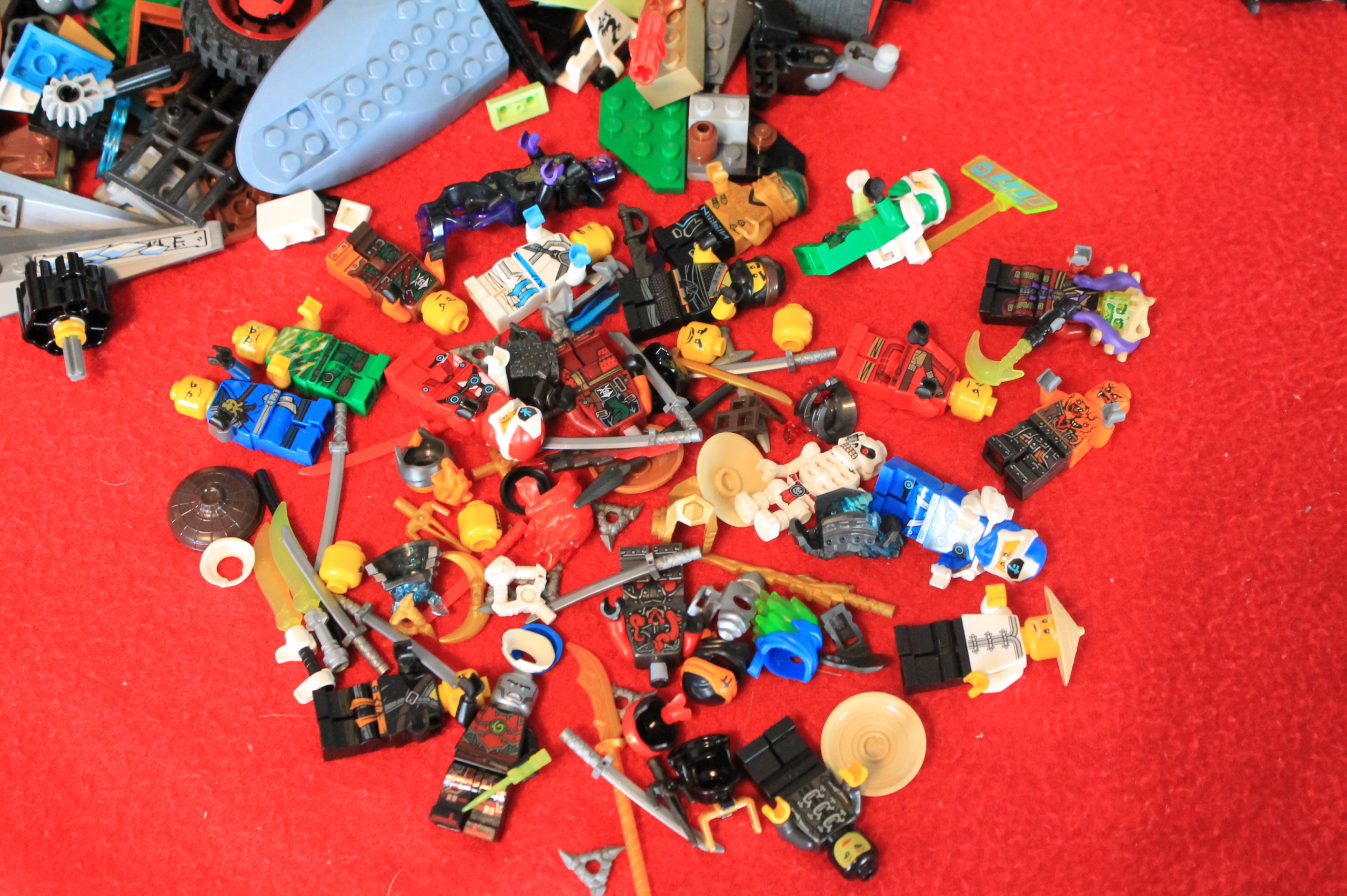 W skład prezentowanej mieszanki wchodzą elementy głównie z serii Ninjago. Nie gwarantuję kompletności zestawów. Klocki mają przede wszystkim służyć do własnego, kreatywnego budowania i zabawy.