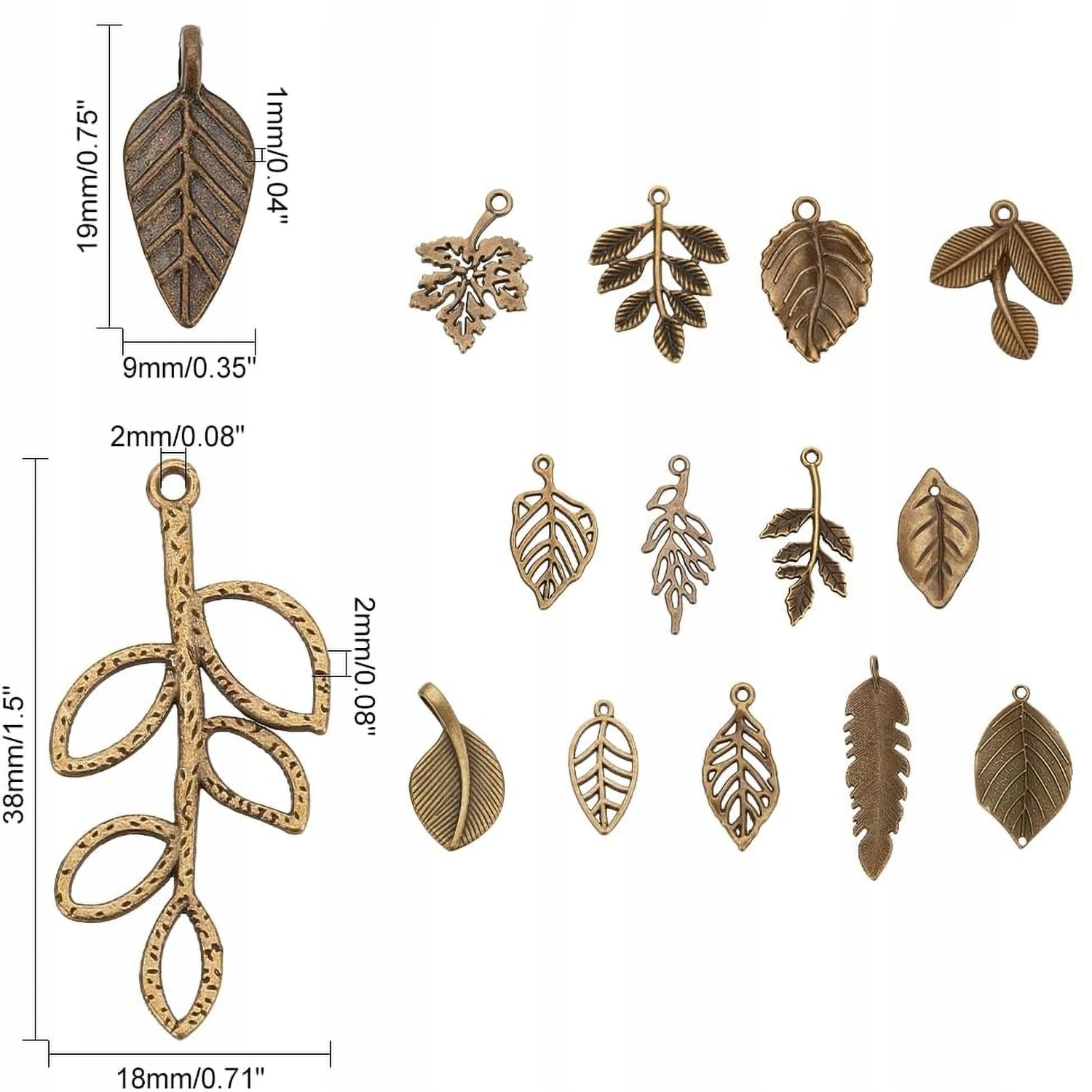 Zestaw 150 metalowych zawieszek w kształcie liści to idealny wybór dla osób tworzących biżuterię w stylu retro i boho. Charmsy wykonane są z trwałego stopu metalu w kolorze antycznego brązu, co nadaje im elegancki, vintage’owy wygląd. Różnorodne kształty liści symbolizują życie, energię i spokój – doskonale pasują do naszyjników, bransoletek, kolczyków oraz ozdób dekoracyjnych.