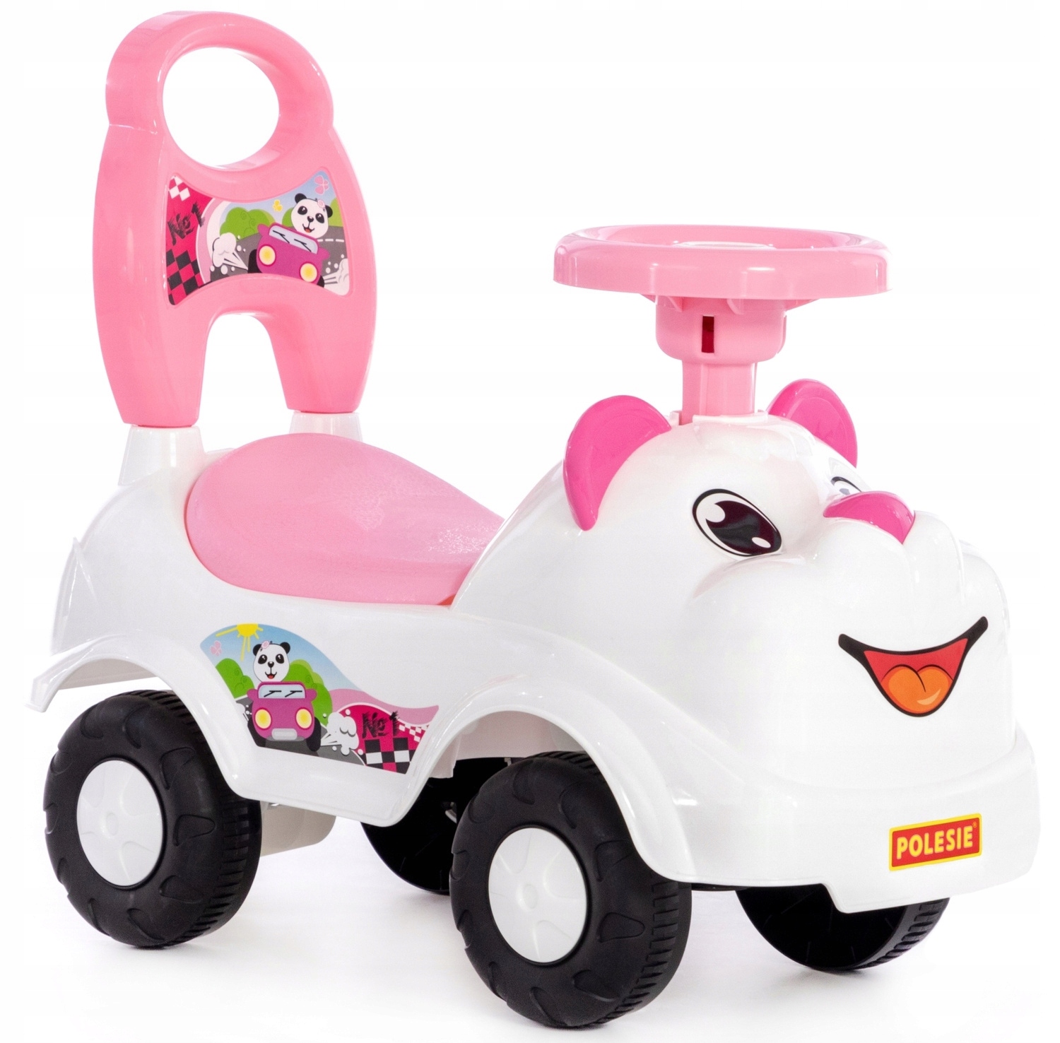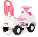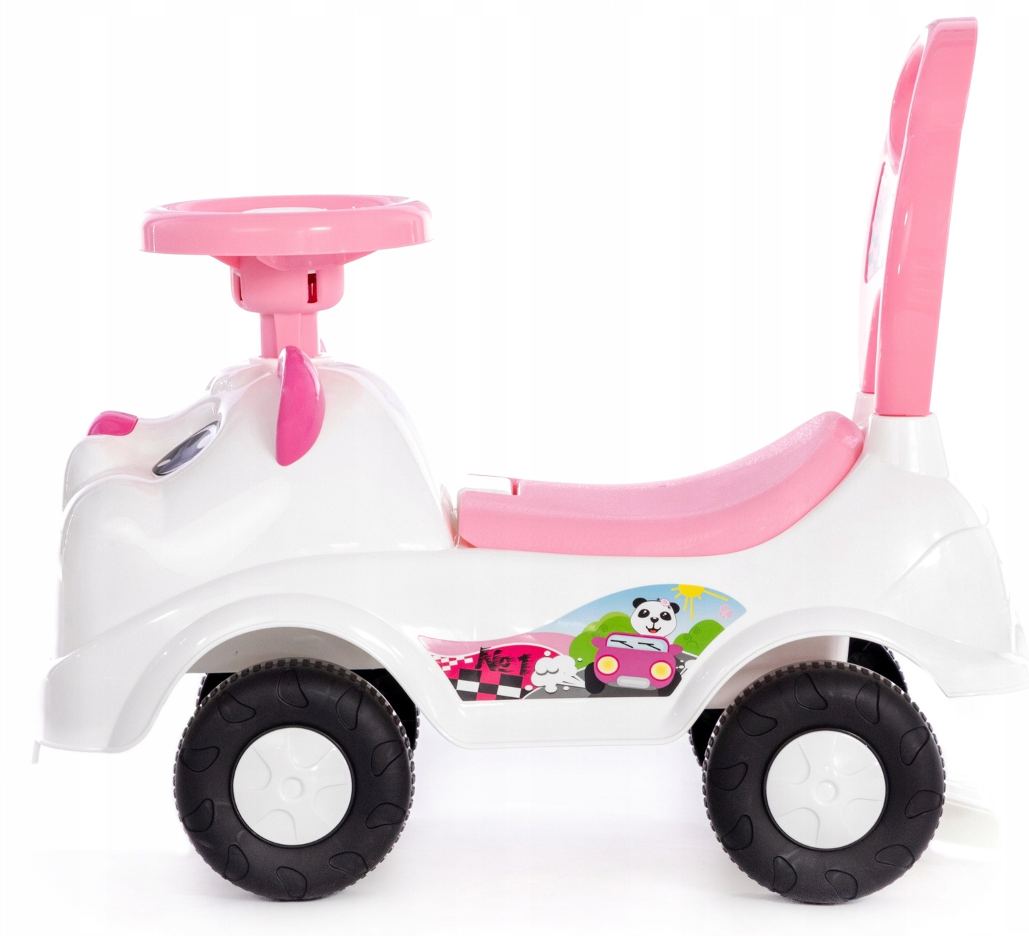 Wielofunkcyjny jeździk przeznaczony jest dla małych dzieci. Dziecko może na nim siedzieć i poruszać się, odpychając nóżkami. Gdy dziecko stawia pierwsze kroki może wspierać się na tylnym uchwycie. Samochodzik posiada klakson który przykuwa uwagę, pobudzając ciekawość i słuch. Szerokie koła i wygodna kierownica to zdecydowanie większy komfort zabawy. Dodatkową zaletą jeździka jest schowek w siedzeniu, gdzie dziecko może przechowywać swoje zabawki.