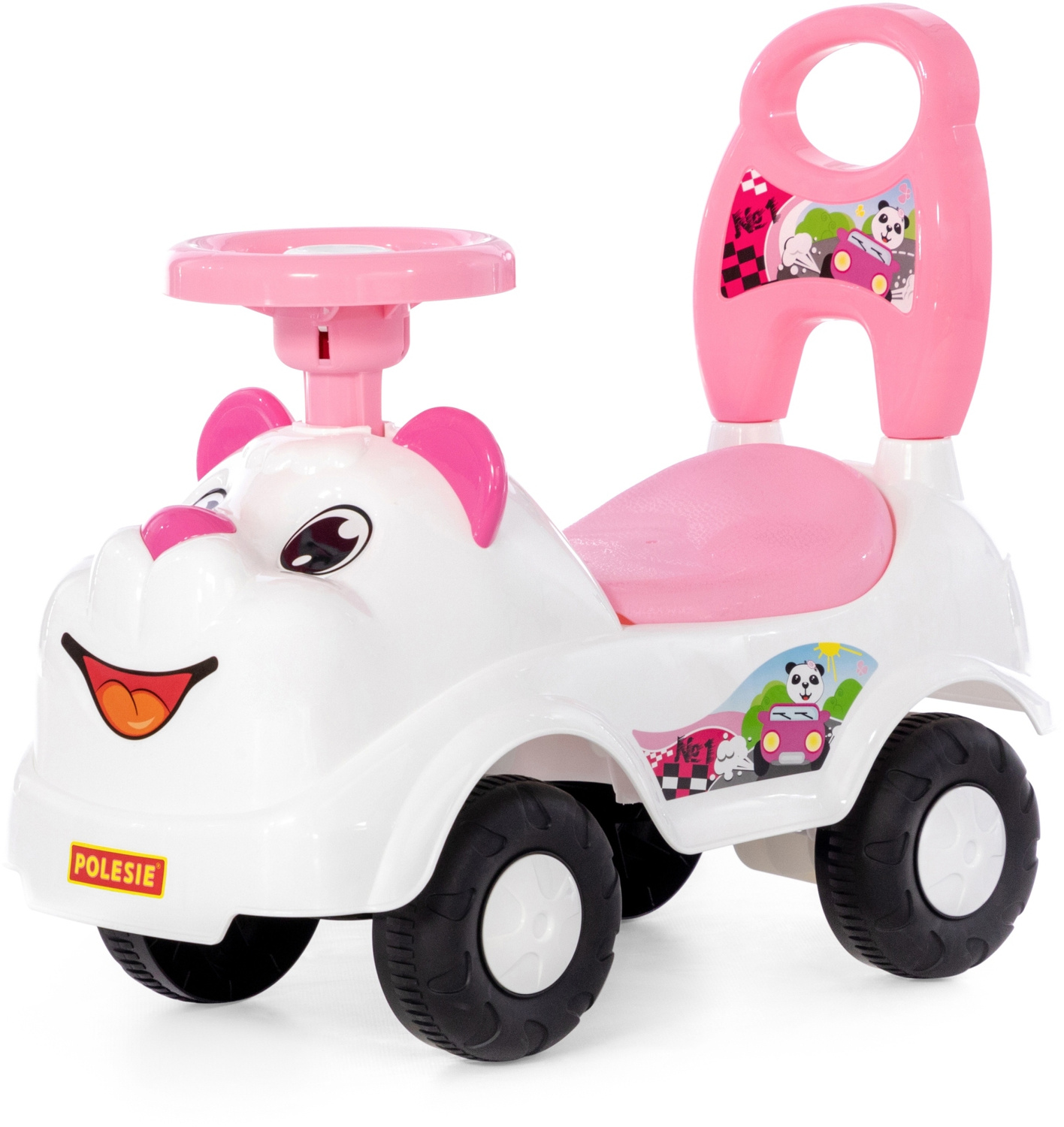 Autko posiada motyw uroczego, białego misia z różowymi dodatkami.