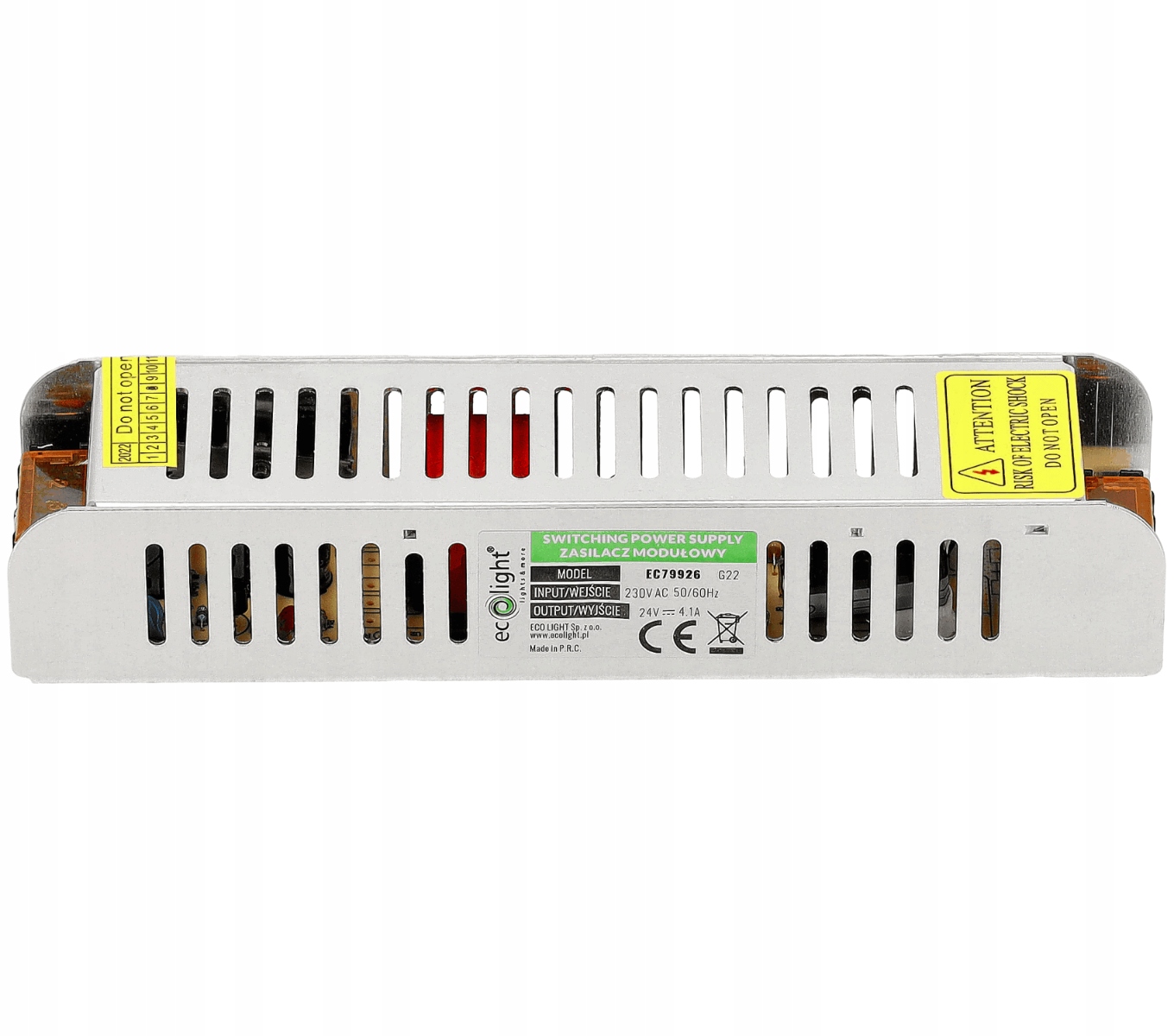 ✅ Moc 100W / prąd 4,17A – stabilne zasilanie dłuższych odcinków taśm LED 24V oraz urządzeń CCTV.