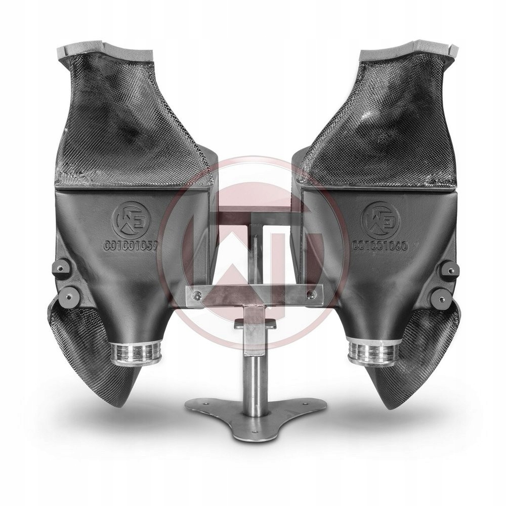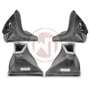 Competition chłodnice powietrza doładowującego EVO 2 mają następujące wymiary sieciowe (2 x [330 mm x 222 mm x 145 mm] = 21 244 cm³), dzięki czemu zapewniają o 77% większą objętość powietrza doładowującego w porównaniu z oryginalną chłodnicą powietrza doładowującego. Konkurencyjna wysokowydajna sieć oferuje bardzo dobre właściwości chłodzące. Waga intercoolera to 2x 6,7kg. Ten unikalny zestaw chłodnicy międzystopniowej składa się z opracowanych przez CAD, swobodnych skrzynek końcowych wykonanych z odlewu aluminiowego dla najlepszego możliwego wewnętrznego przepływu powietrza i odporności na ciśnienie do 6 barów (testowane). Odpowiedni węglowy kanał powietrzny zapewniający optymalny przepływ do chłodnicy powietrza doładowującego. A także dodatkowe węże silikonowe o powiększonym przekroju. Ponadto wszystkie nasze intercoolery posiadają powłokę antykorozyjną o właściwościach przewodnictwa cieplnego. Wszystko to gwarantuje optymalne chłodzenie przy znacznym wzroście wydajności. Otrzymasz kompletnie gotowy do montażu zestaw, który możesz po prostu wymienić na standardowy intercooler - w tym nowe węglowe kanały powietrzne, węże silikonowe i aluminiowe adaptery. Wszystkie nasze produkty podlegają stałej kontroli jakościowej. Nadaje się do wyścigów. Wlot i wylot 70 mm.