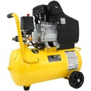 Kompresor zasilany jest przez bardzo wydajną, jedno-tłokową pompę powietrza oraz silnik o mocy 1,5 KM. Taki zestaw pozwala na długotrwałą, ciągłą i efektywną pracę w nawet najbardziej wymagających warunkach.
