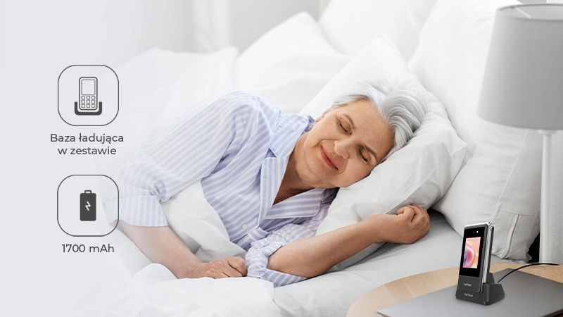 W zestawie z telefonem, oprócz bazy ładującej, znajduje się również wymienna osłona baterii bez przycisku SOS. Dzięki temu wystarczy kilka ruchów, aby w mgnieniu oka odświeżyć wygląd Twojego telefonu.