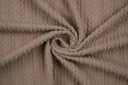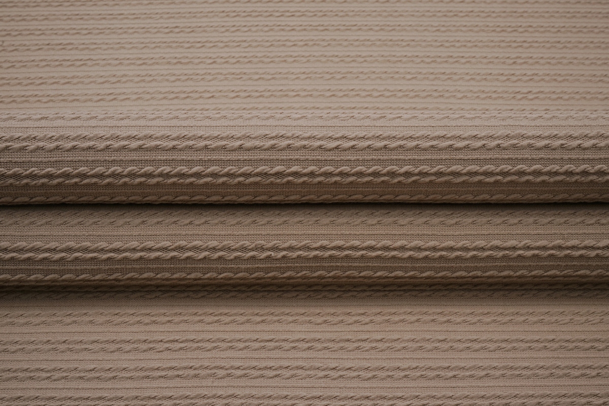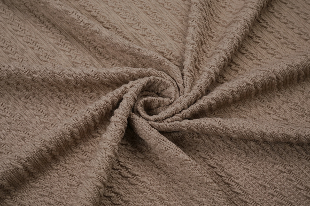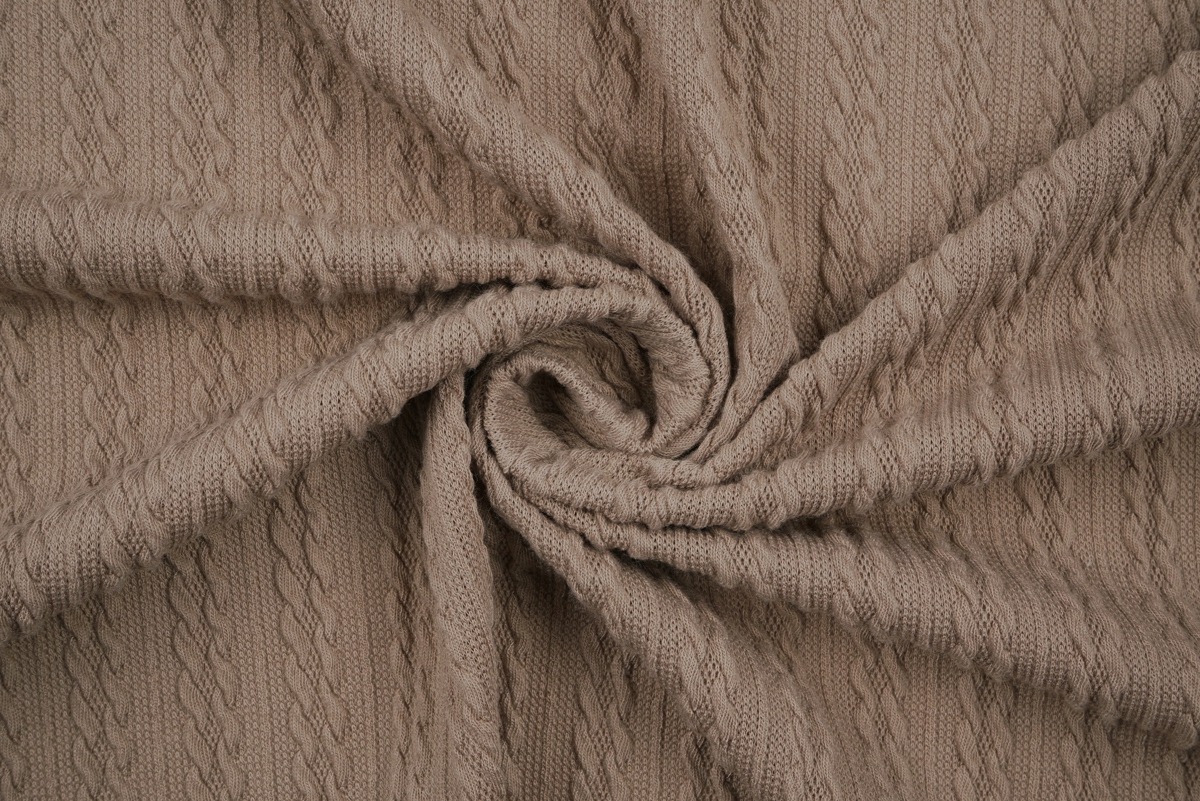 Dzianina swetrowa warkocz to przyjemna w dotyku, otulająca dzianina z warkoczowym splotem. Dzianina jest bardzo praktyczna, wytrzymała, a dodatkowo jej powierzchnia jest wielowymiarowa, ponieważ wzór jest wypukły. Zapewnia znakomitą cyrkulację powietrza mimo, że została wykonana z włókien syntetycznych.