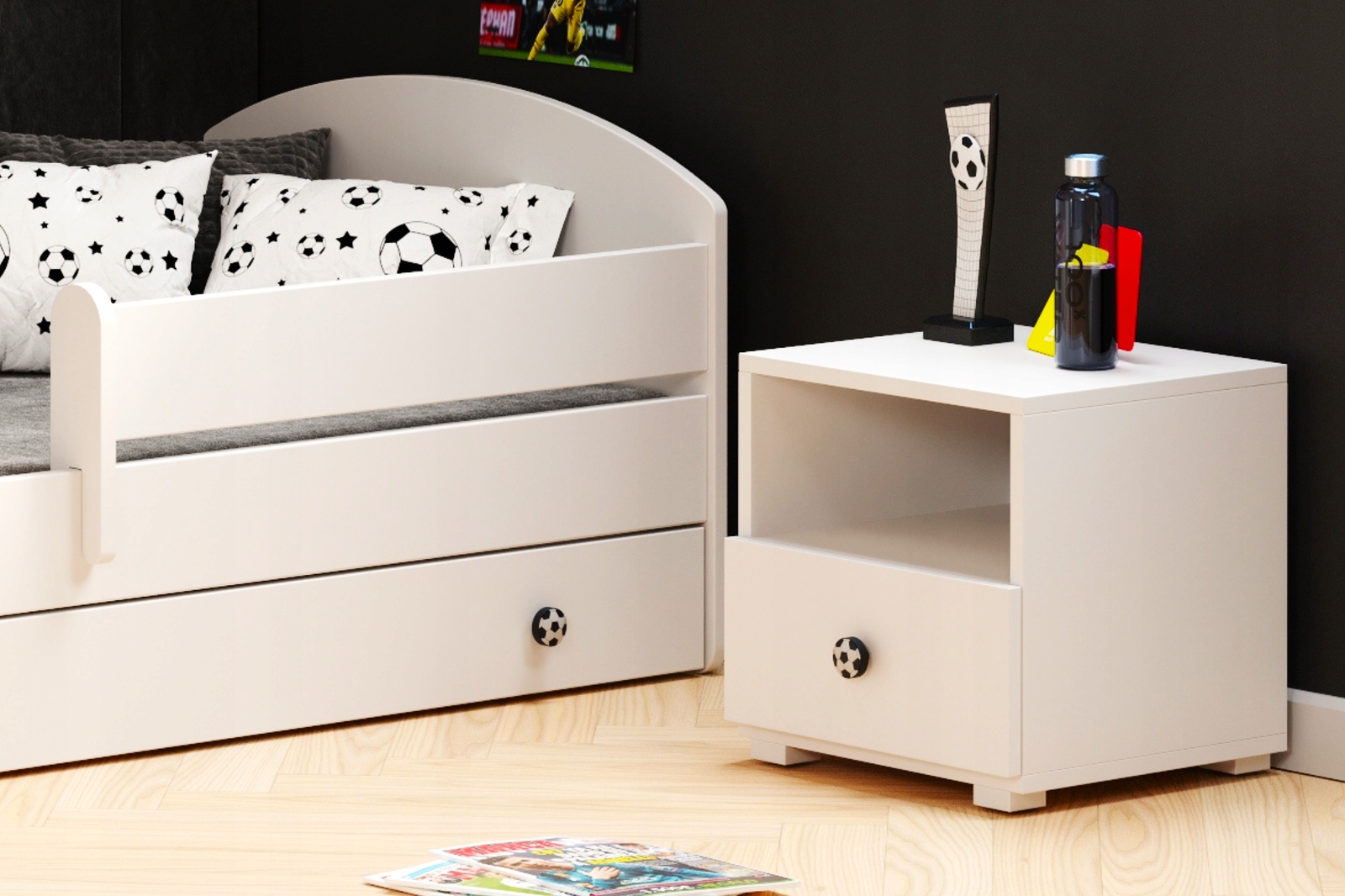 Szafka nocna w stylu sportowym to praktyczny mebel, który pomoże Twojemu dziecku zachować porządek i mieć wszystko pod ręką – od ulubionej książki po lampkę nocną.
